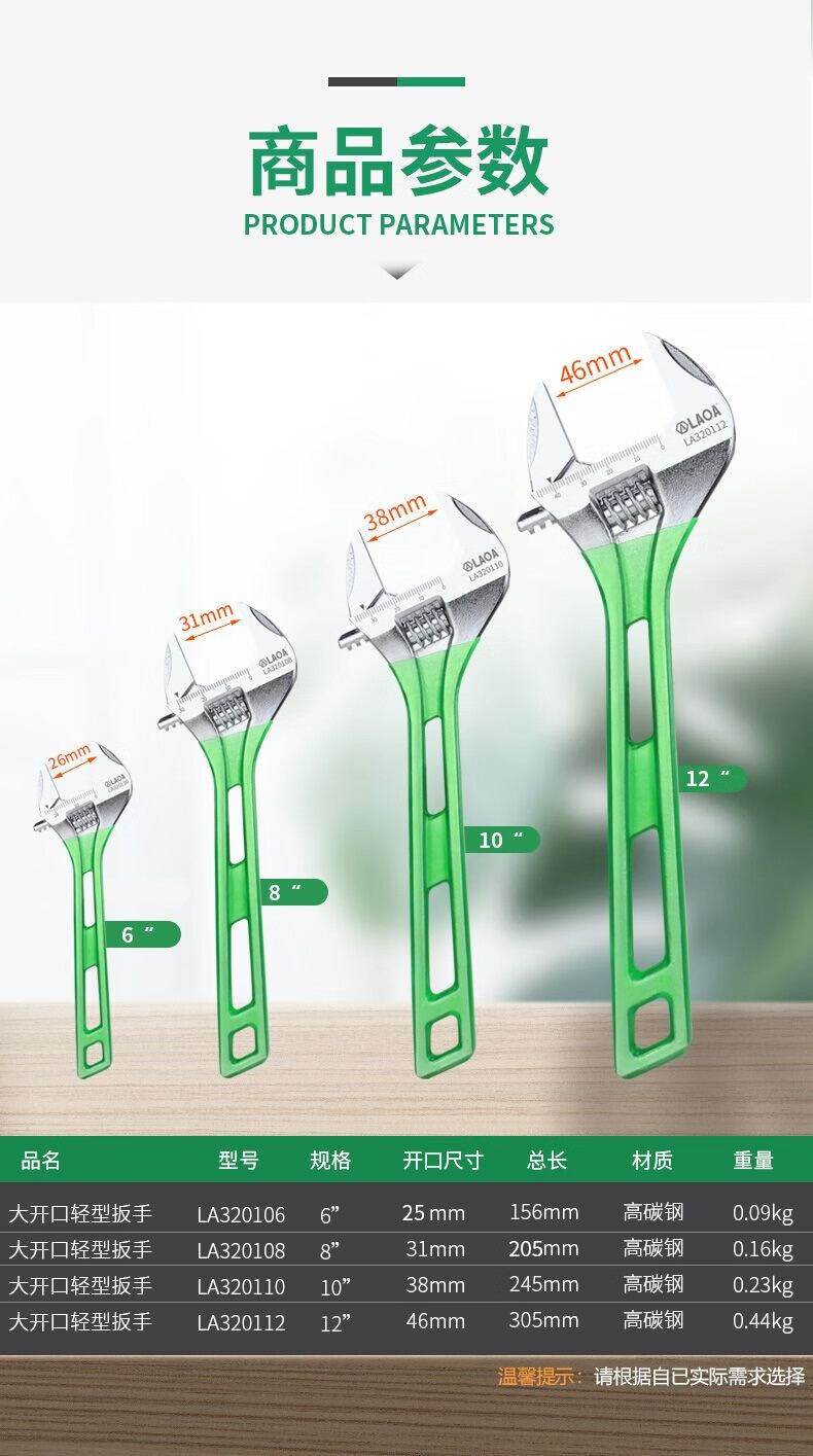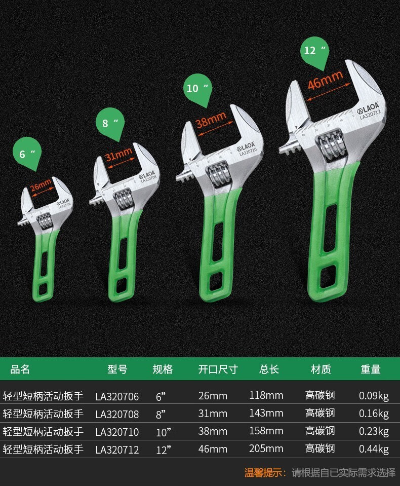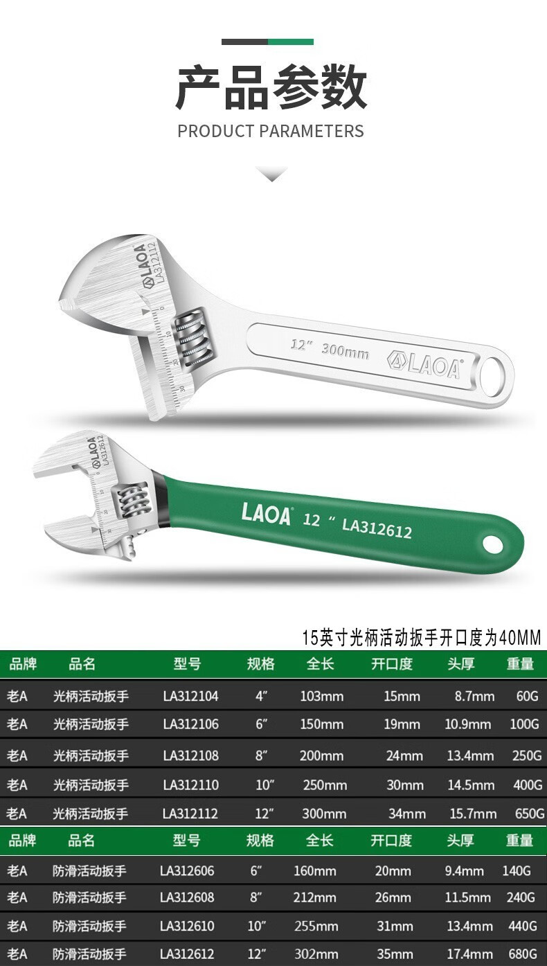 LAOA(老A)光柄活动扳手4"/100mm