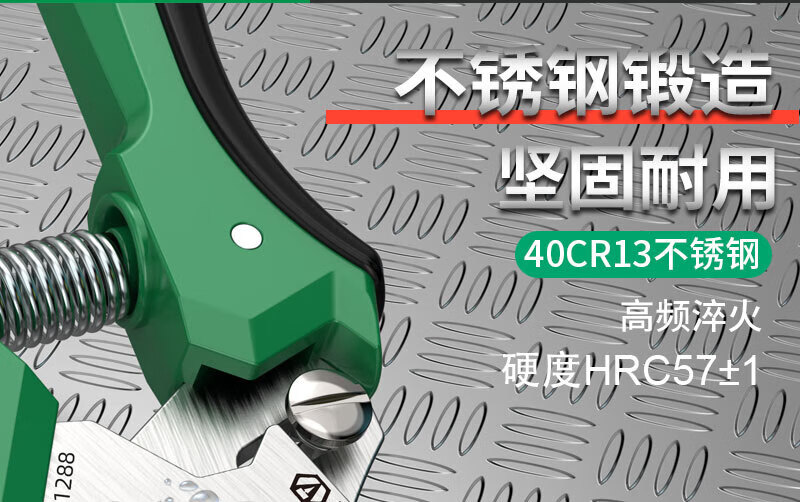 3 省力结构:内置高强度省力弹簧,可承受上万次开合,半自动回弹设计减少手部疲劳;45度力学刃角设计,剪切更省力