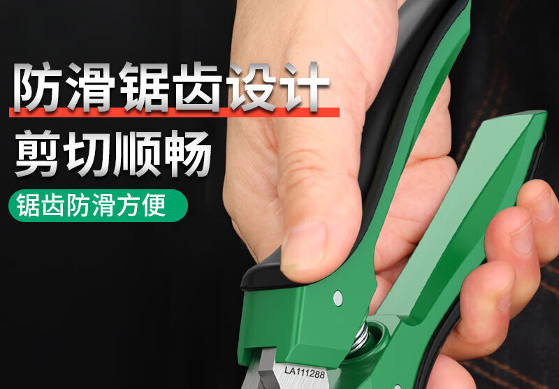 2 刀刃设计:精磨刃口锋利,下刃带防滑锯齿,咬合紧密剪切顺畅,可有效防止材料打滑