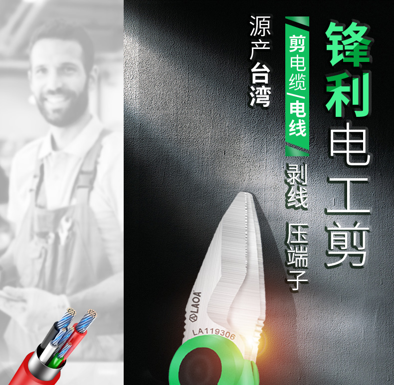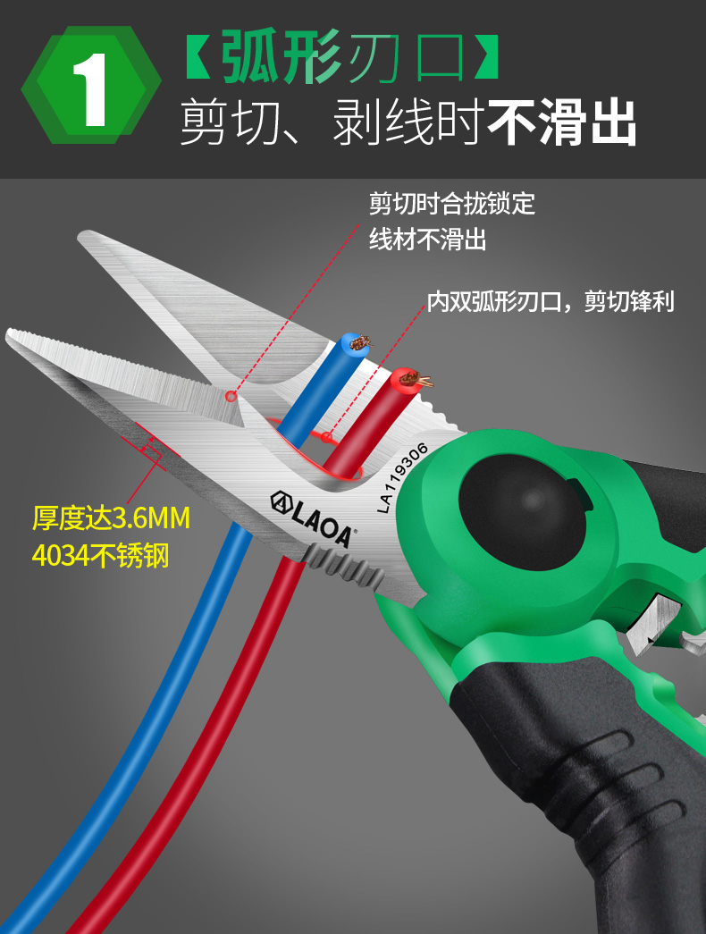 LAOA(老A)6"双色柄多功能电工剪刀