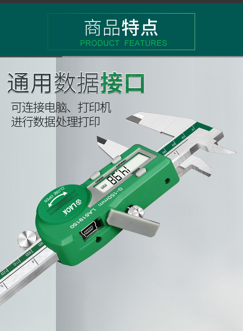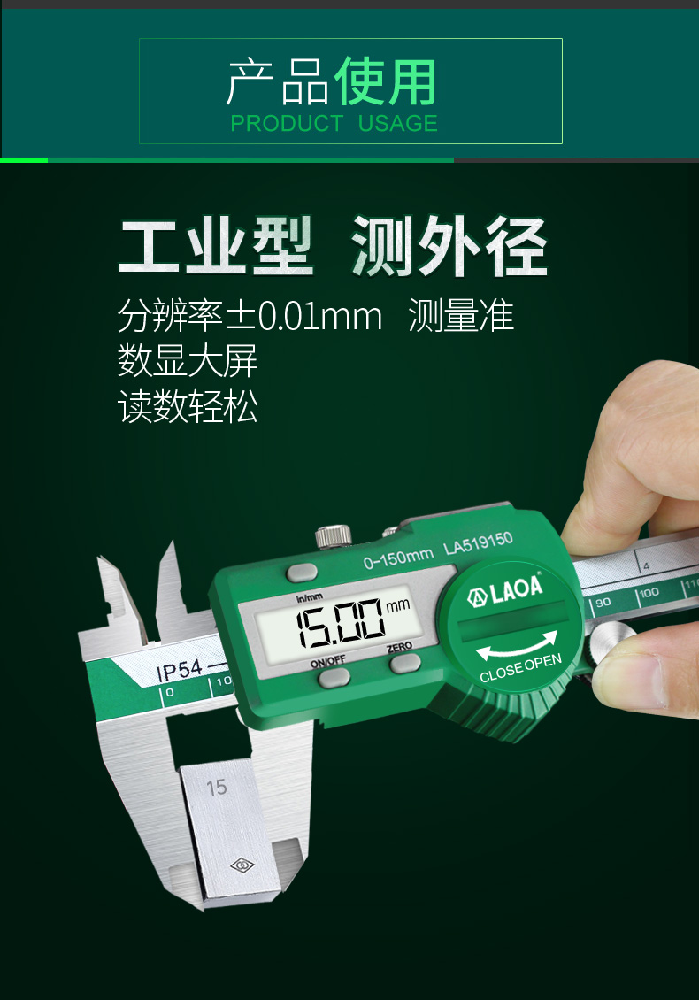 4. 显示与操作:配备LCD数显大屏,读数清晰直观;设开关机、置零、公英制转换等功能键,操作便捷;合金辅助滚轮设计,便于细微调整测量位置
