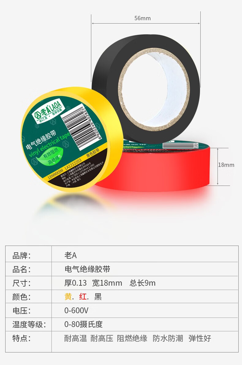 LAOA(老A)红色电气绝缘胶带 电工胶布