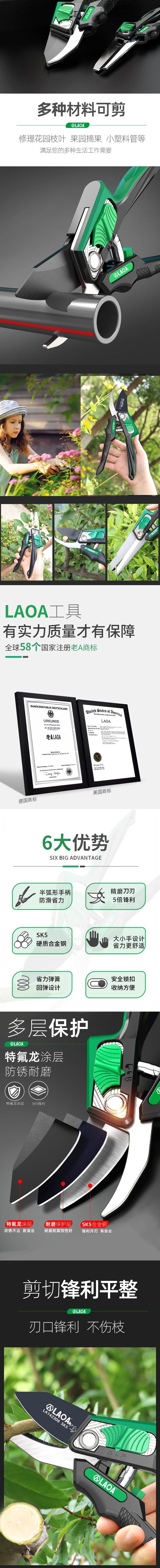 LAOA(老A)10"大小手长直嘴花枝剪 园艺剪