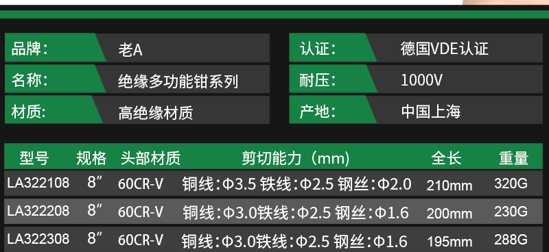 LAOA(老A)绝缘多功能斜嘴钳