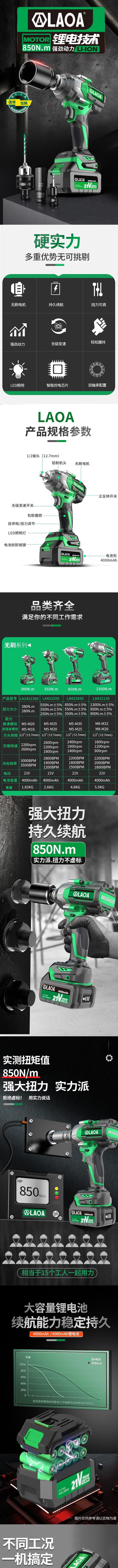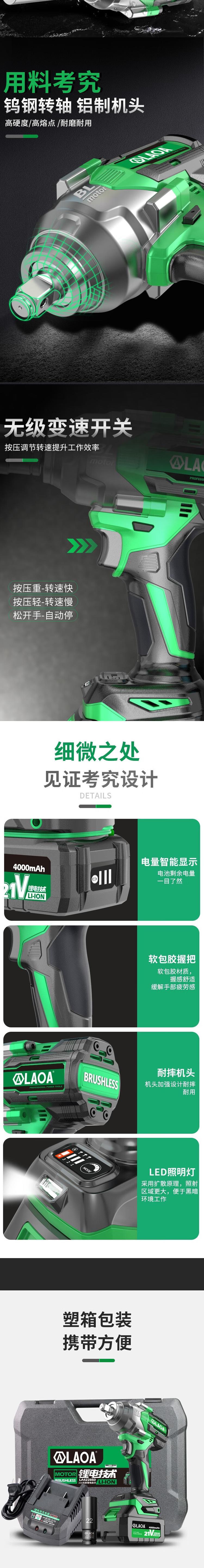 LAOA(老A)21V无刷锂电扳手 850N.m 1/2" 一电一充