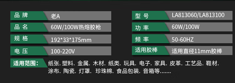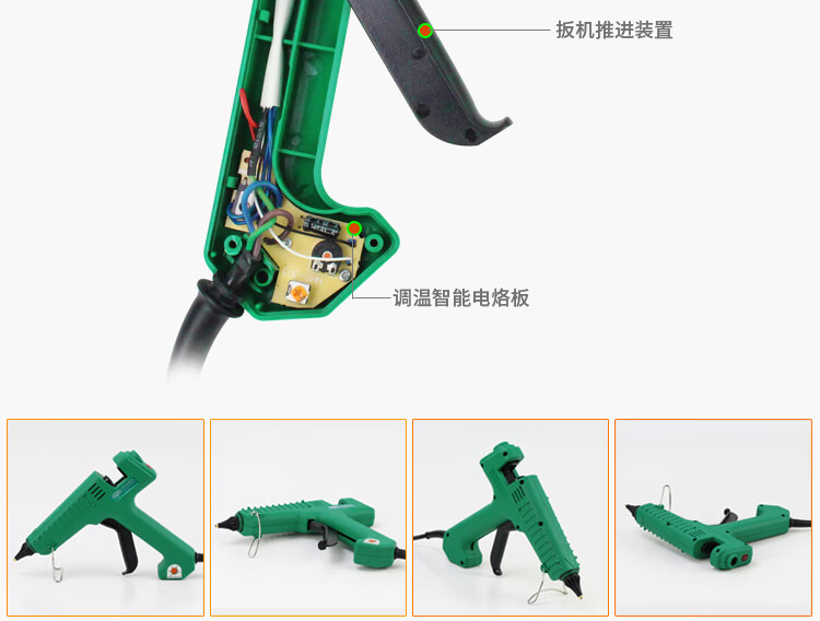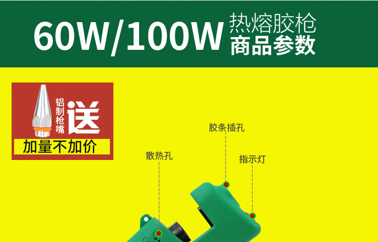 铝制枪嘴(60W款标配),导热均匀,出胶流畅不断胶