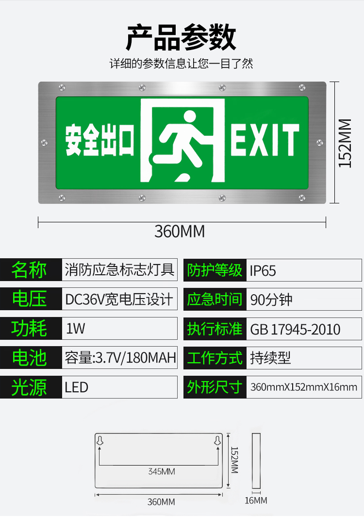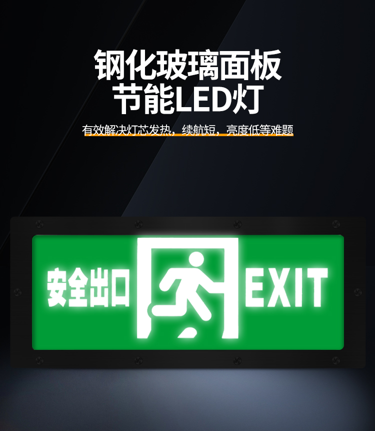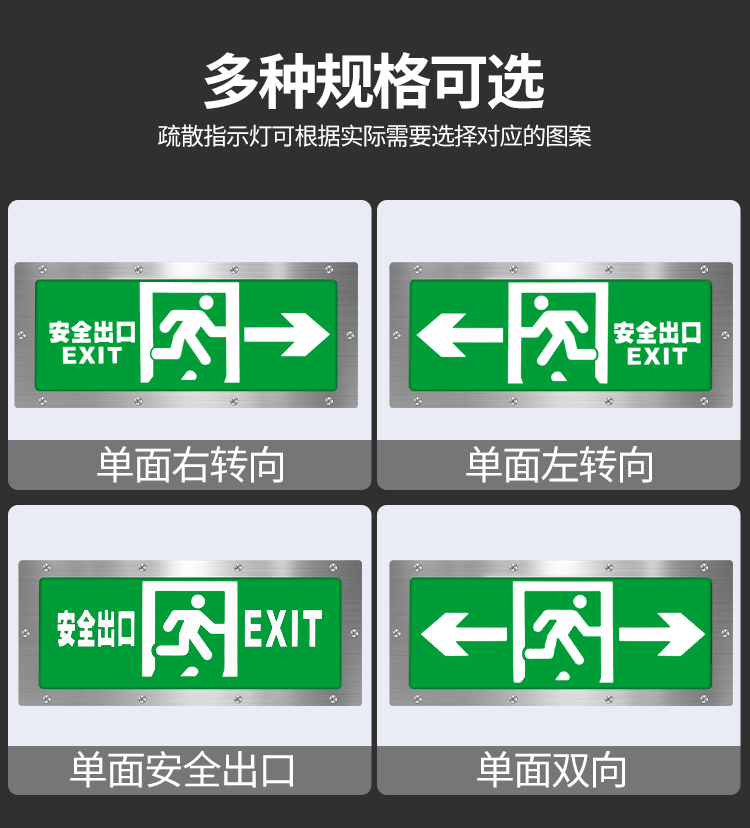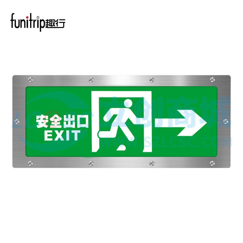 趣行 安全出口指示牌 不锈钢IP65防水指示灯充电照明灯楼道疏散指示灯 安全出口 1个(右向箭头)