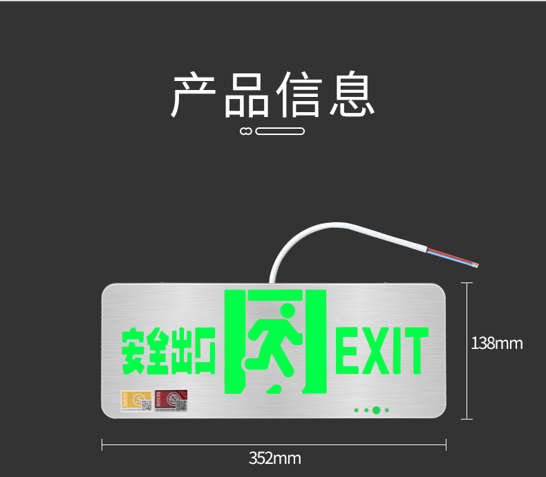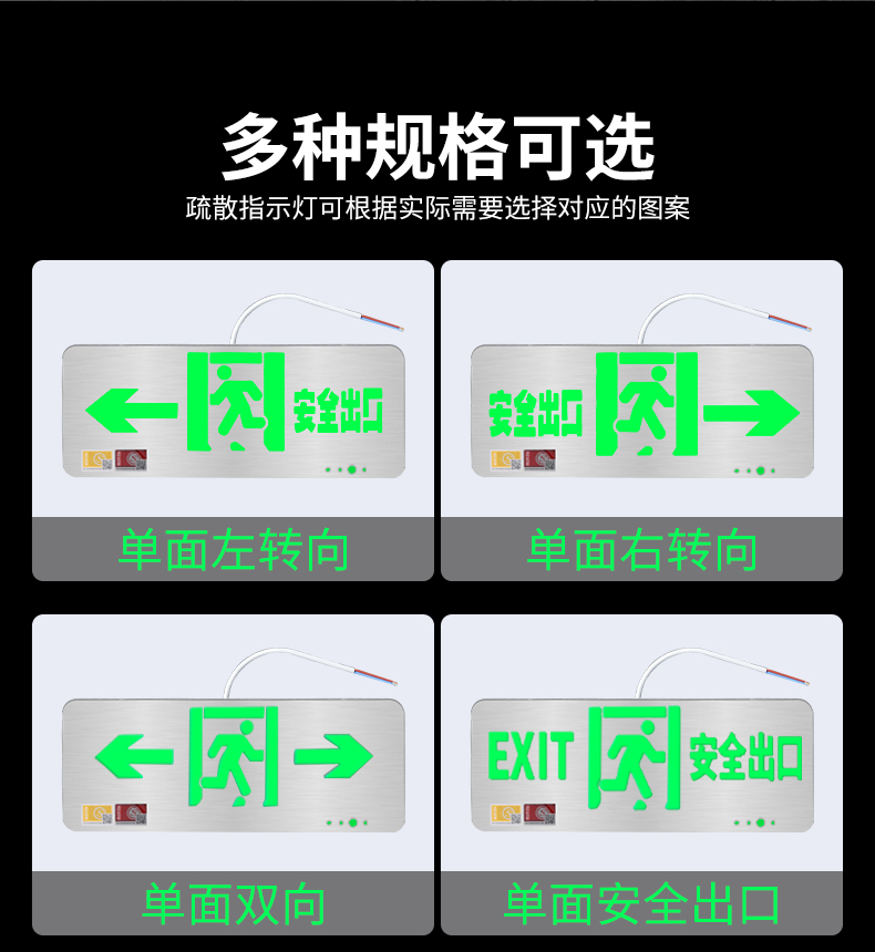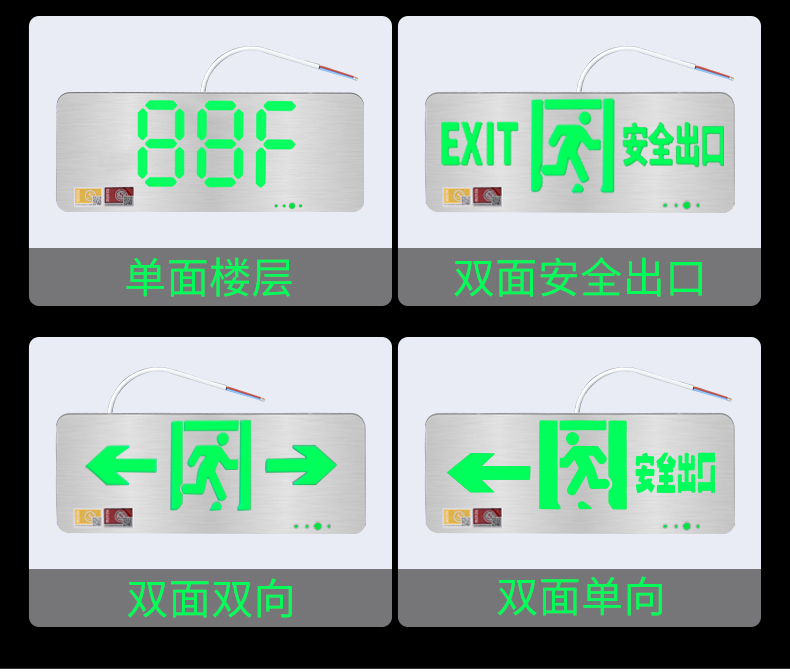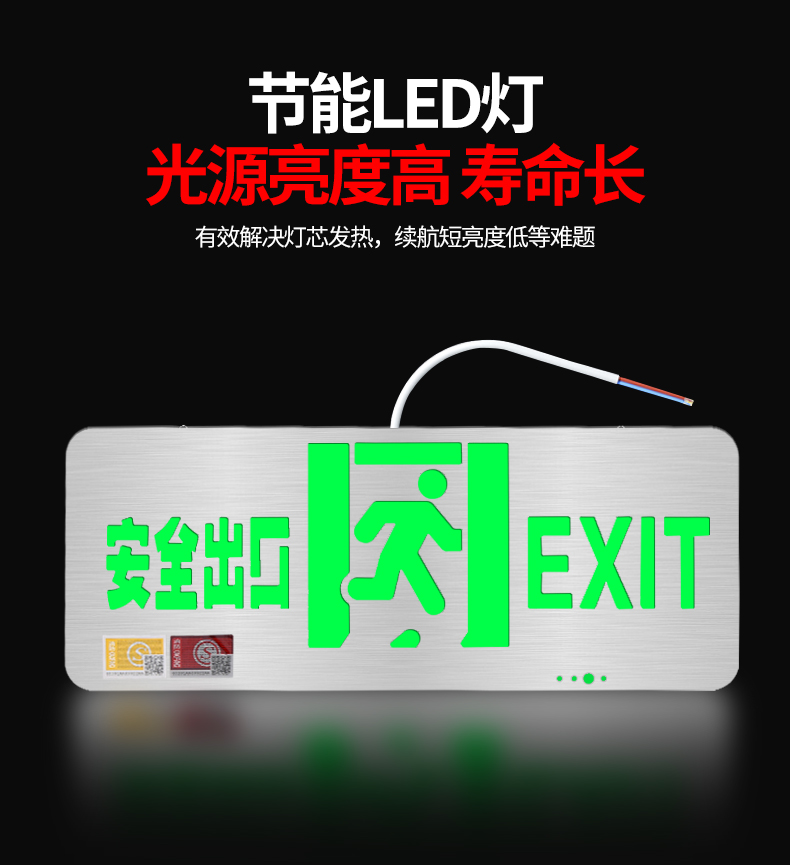 趣行 不锈钢安全出口指示灯 LED消防应急标识灯通道紧急疏散指示牌应急灯1个(单面左向)