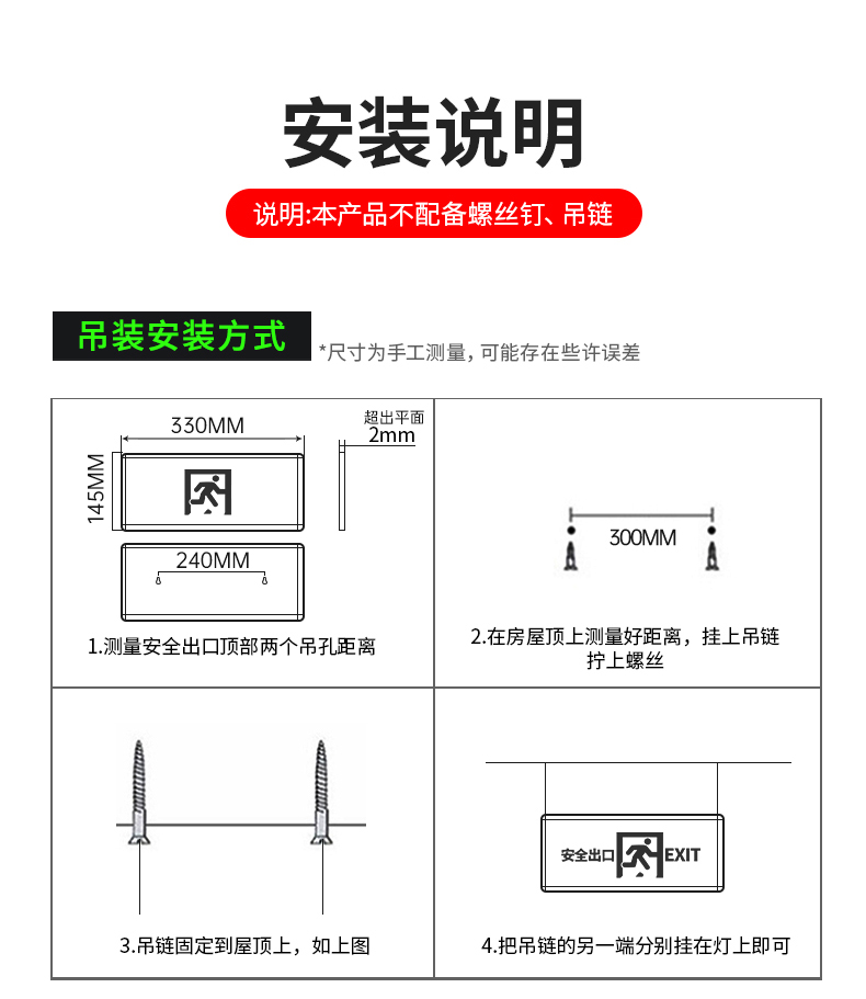 趣行 安全出口指示灯 LED消防应急标识灯通道紧急疏散指示牌应急灯1个(单面左向出口)