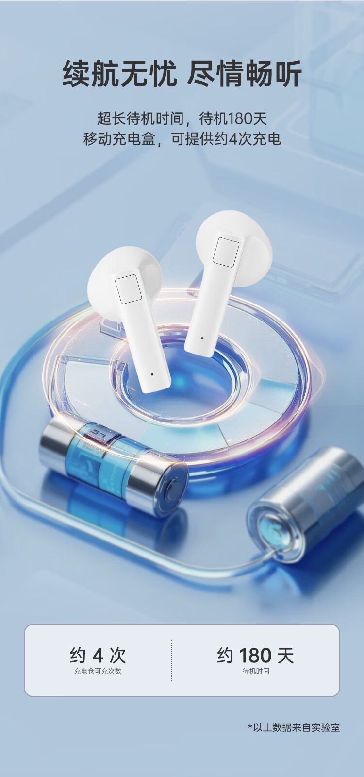 5 续航持久:耳机音乐播放约4-6H,通话约8H,充电仓可提供约4次充电,总续航能力强;待机时间约180天
