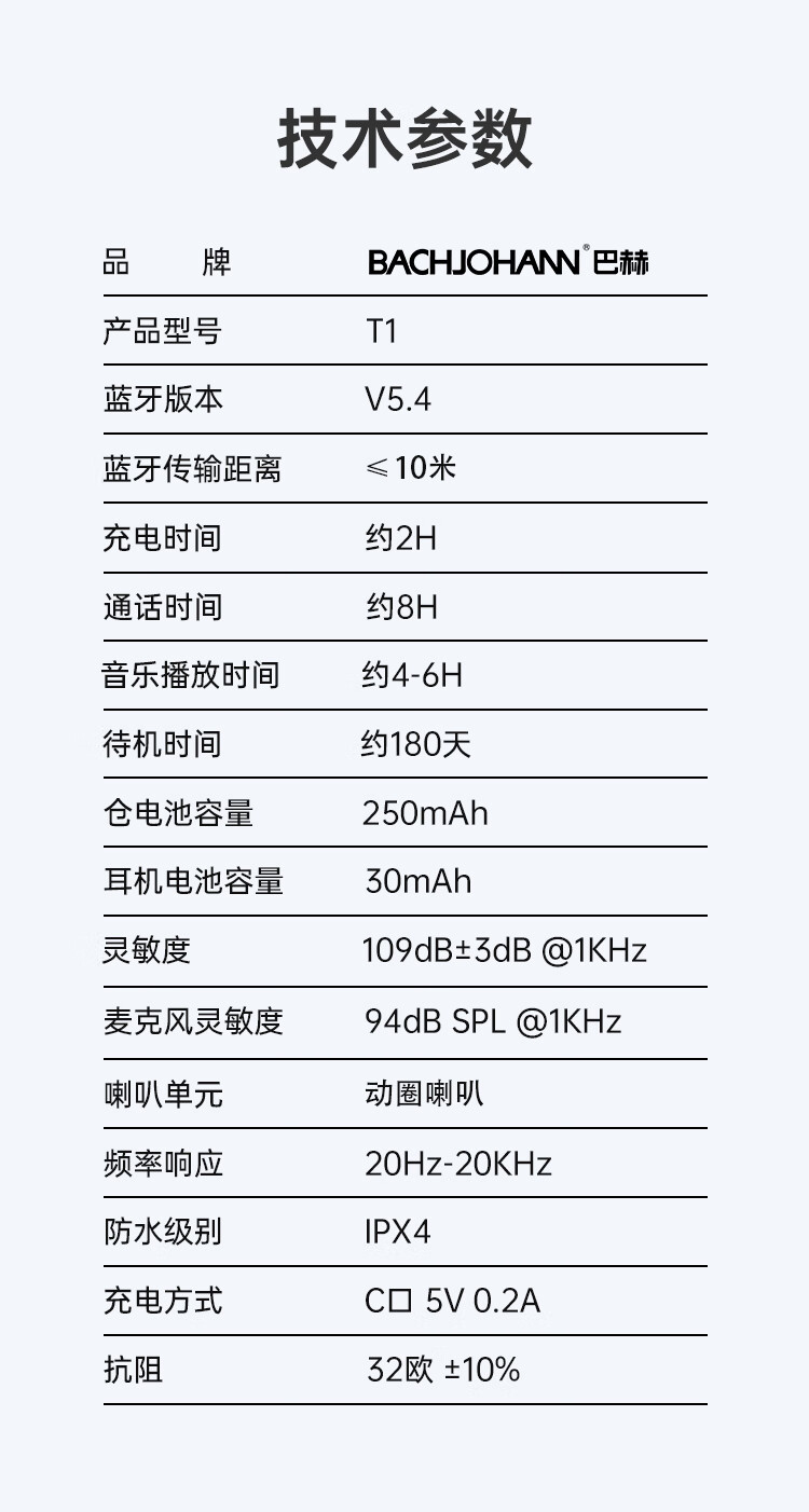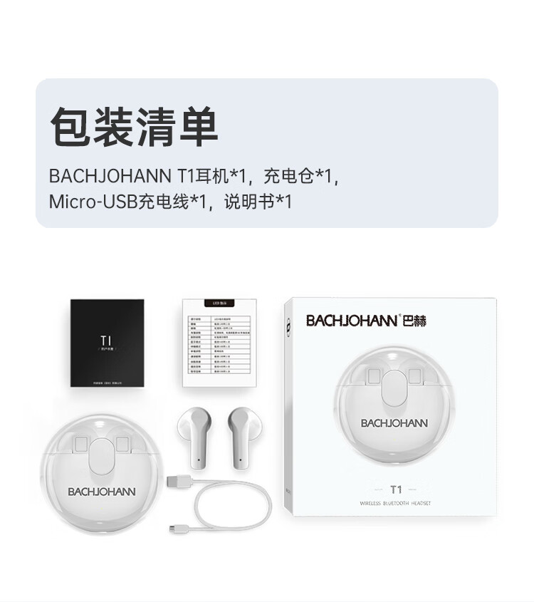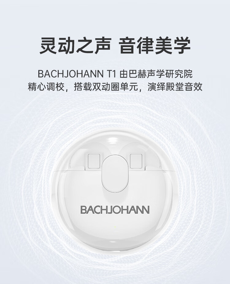 德国巴赫T1智能降噪真无线蓝牙耳机运动蓝牙5.3适用于华为苹果平板等蓝牙通用 白色