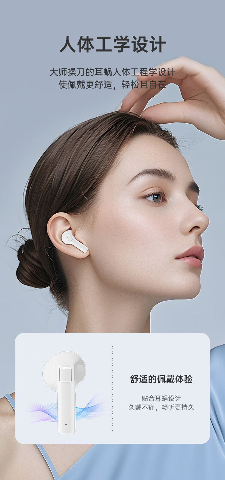 6 人体工学设计,贴合耳蜗,久戴舒适不痛