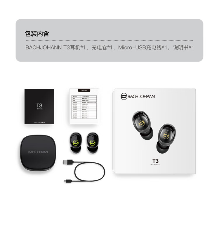 德国巴赫T3(Silver)电镀真无线蓝牙耳机入耳式运动跑步隐形超长待机续航适用于华为苹果平板等蓝牙通用 银色