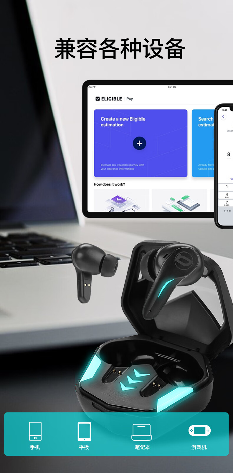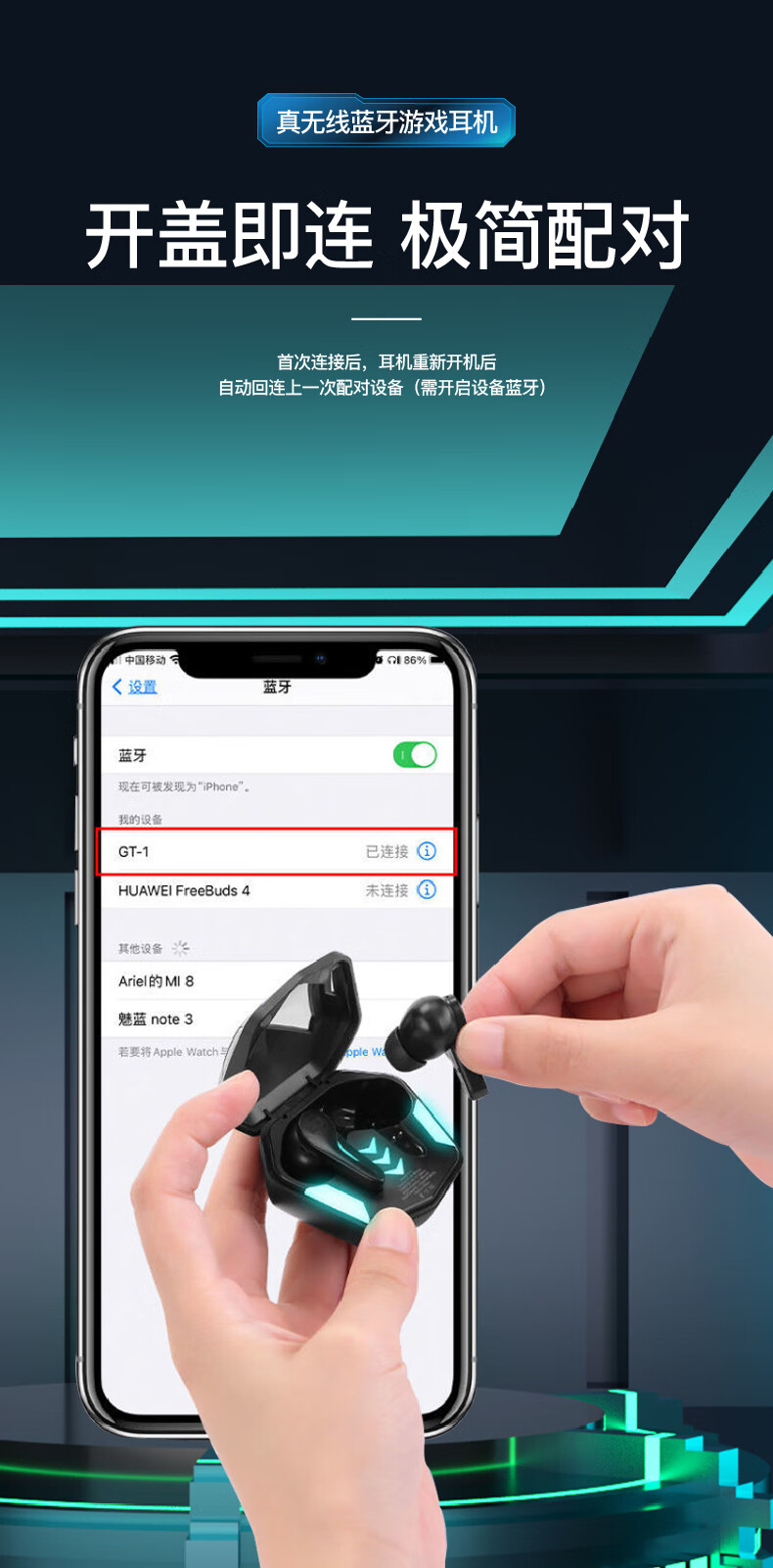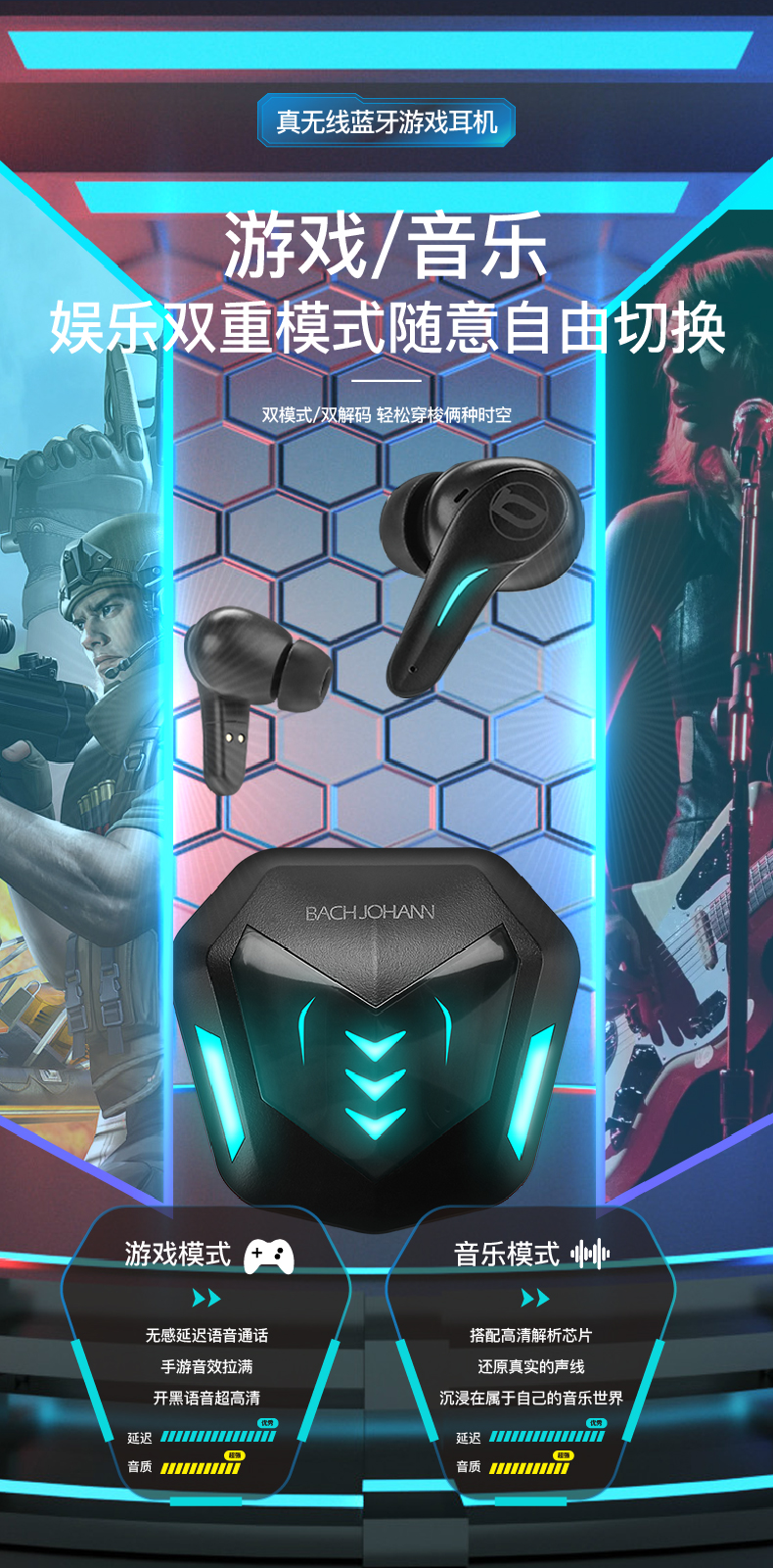德国巴赫GT-1电竞游戏无感延迟无线蓝牙耳机高音质入耳式超长待机续航降噪耳机 TWS游戏耳机