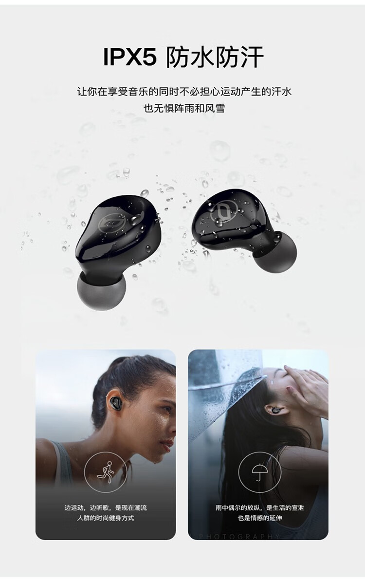 防水性能:IPX5级防水防汗,适合运动场景,无惧汗水和阵雨