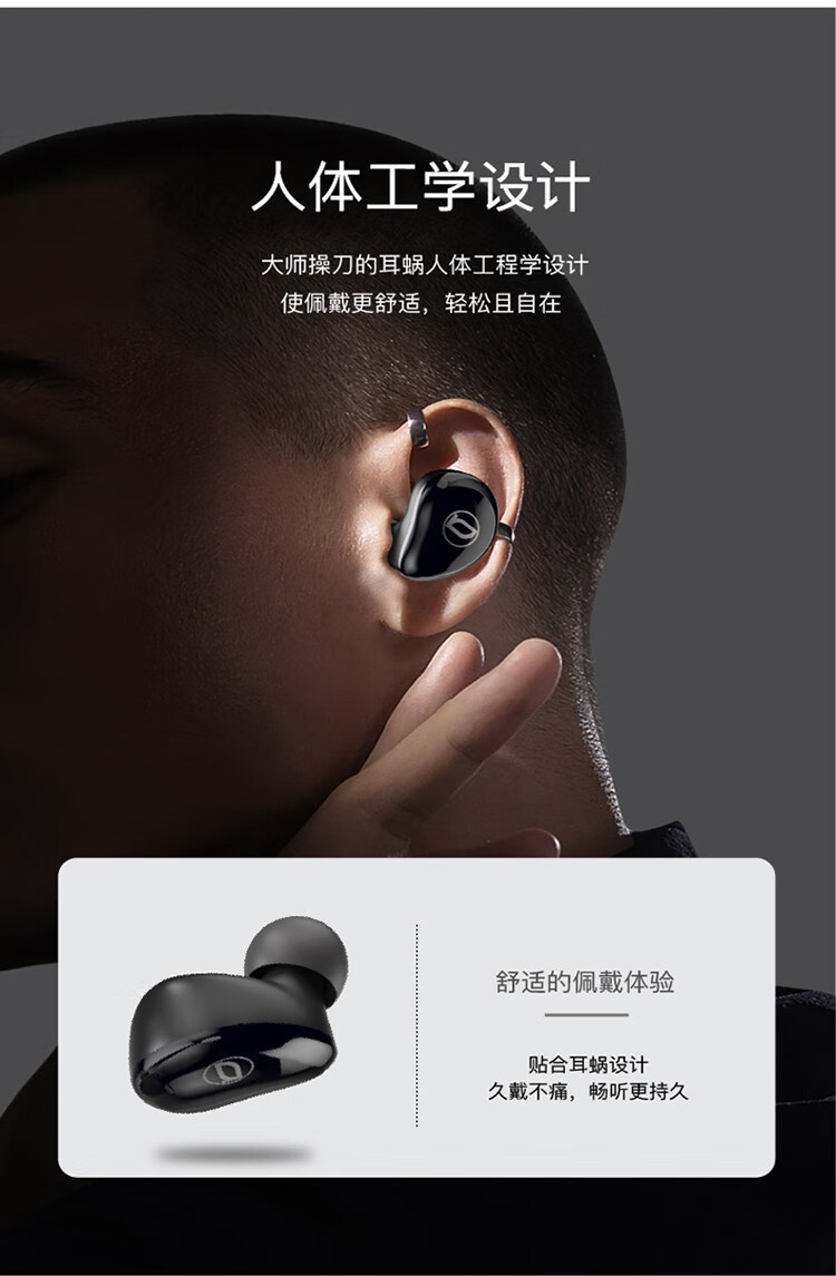 佩戴舒适:人体工学设计,贴合耳蜗,久戴不痛,搭配三对不同尺寸硅胶耳塞,适配多种耳型