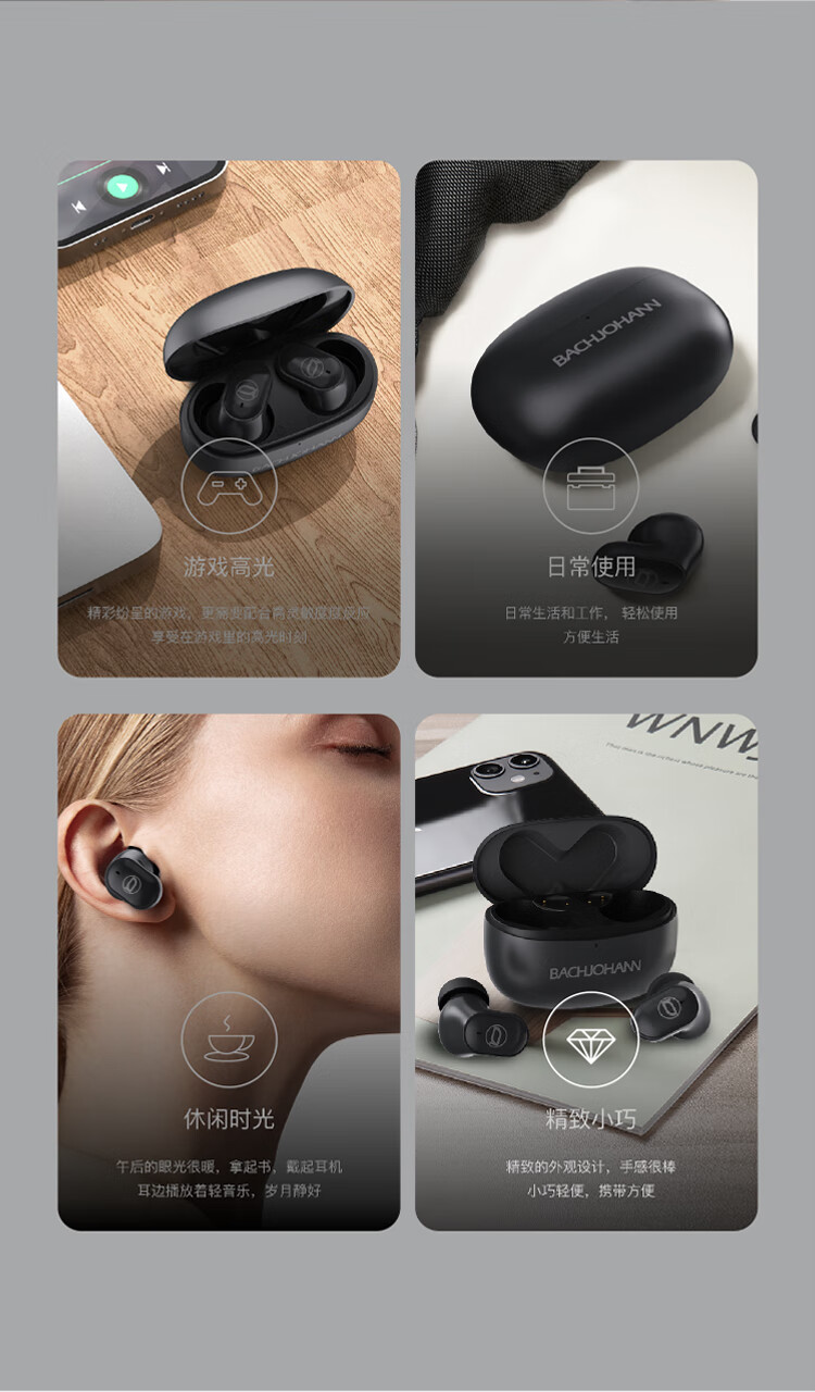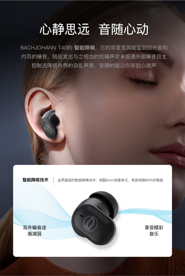 佩戴设计:入耳式人体工学设计,贴合耳廓,久戴不痛,舒适稳固