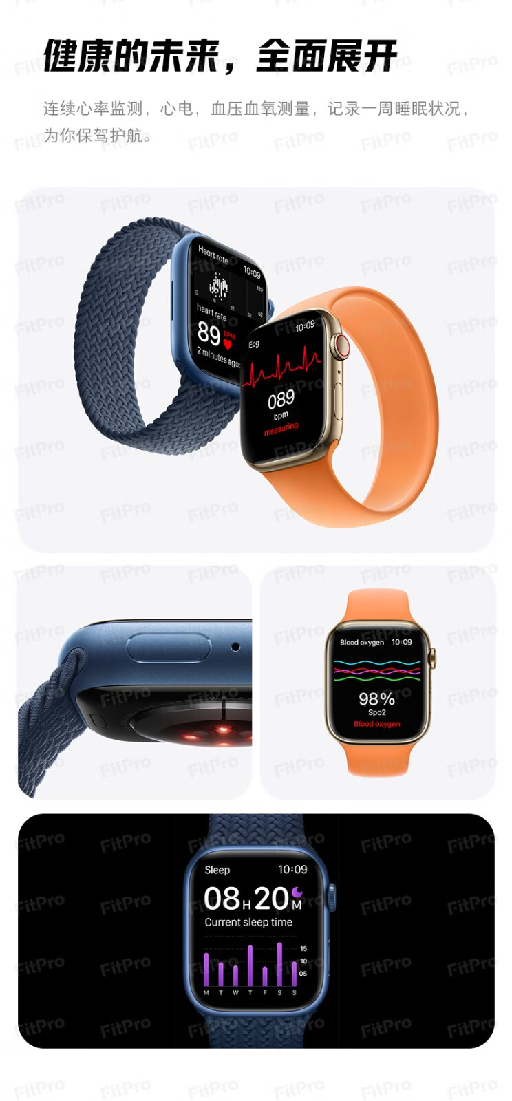 健康监测功能全面:支持连续心率监测、心电检测、血压血氧测量、睡眠状况记录(可保存一周数据),助力日常健康管理