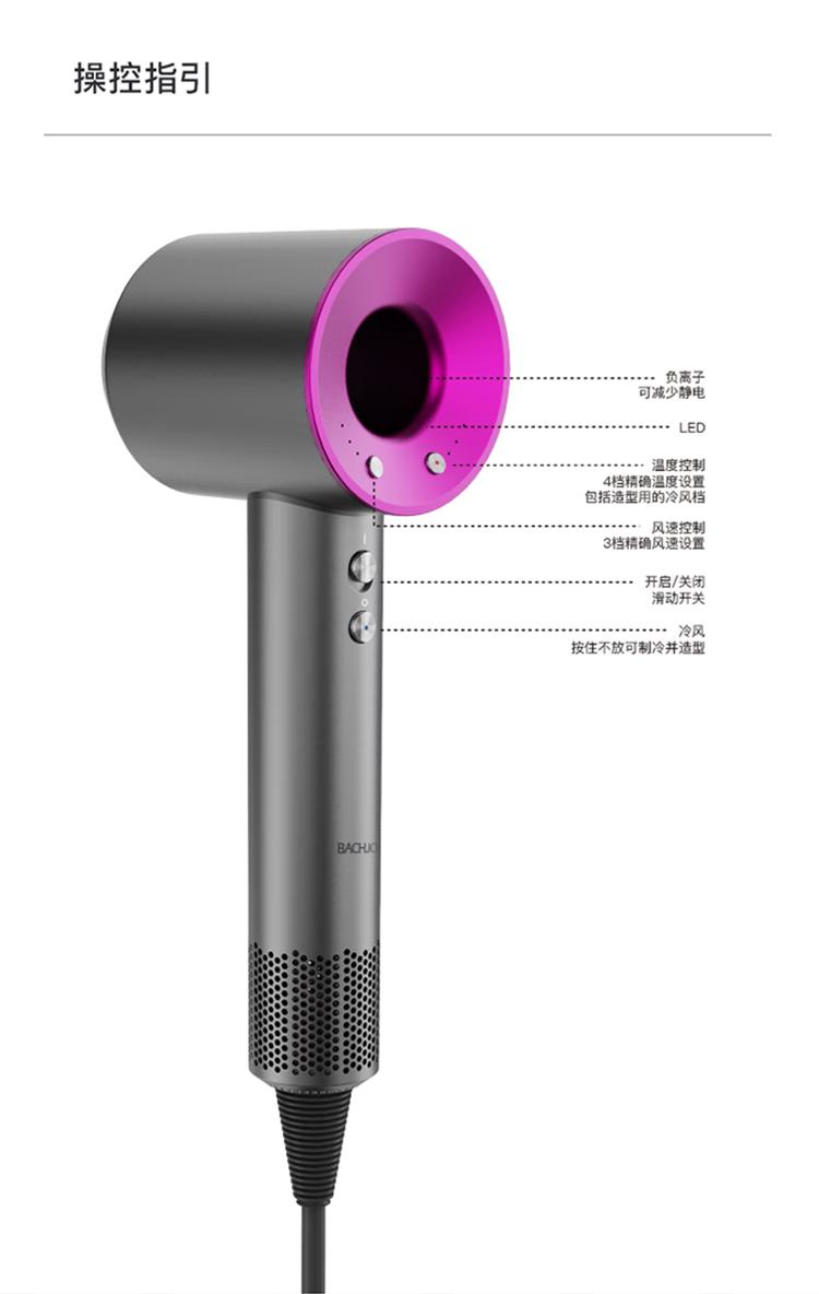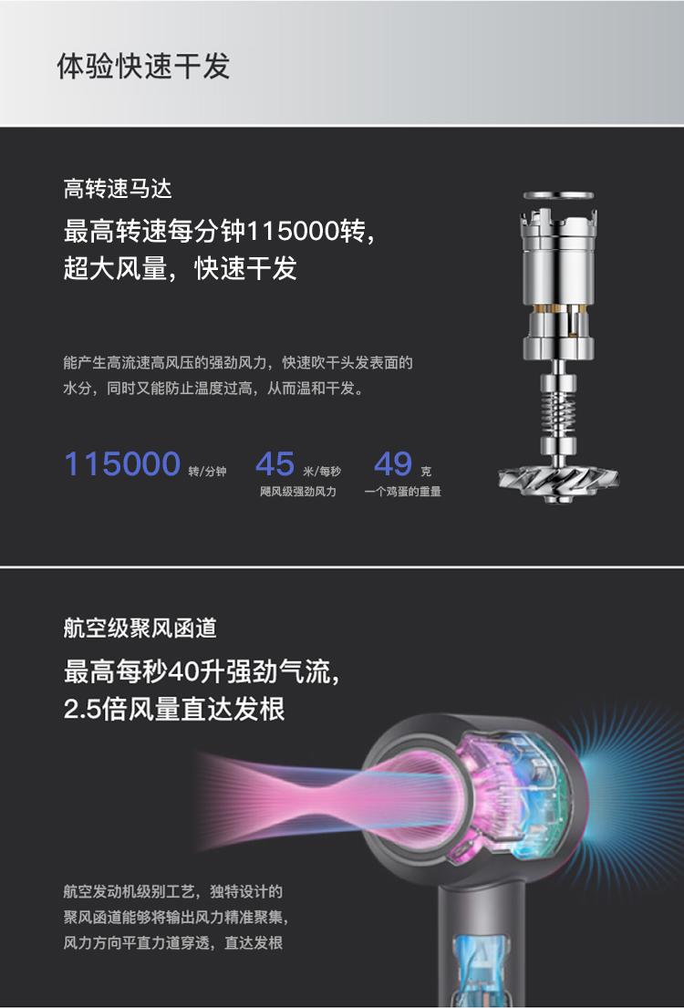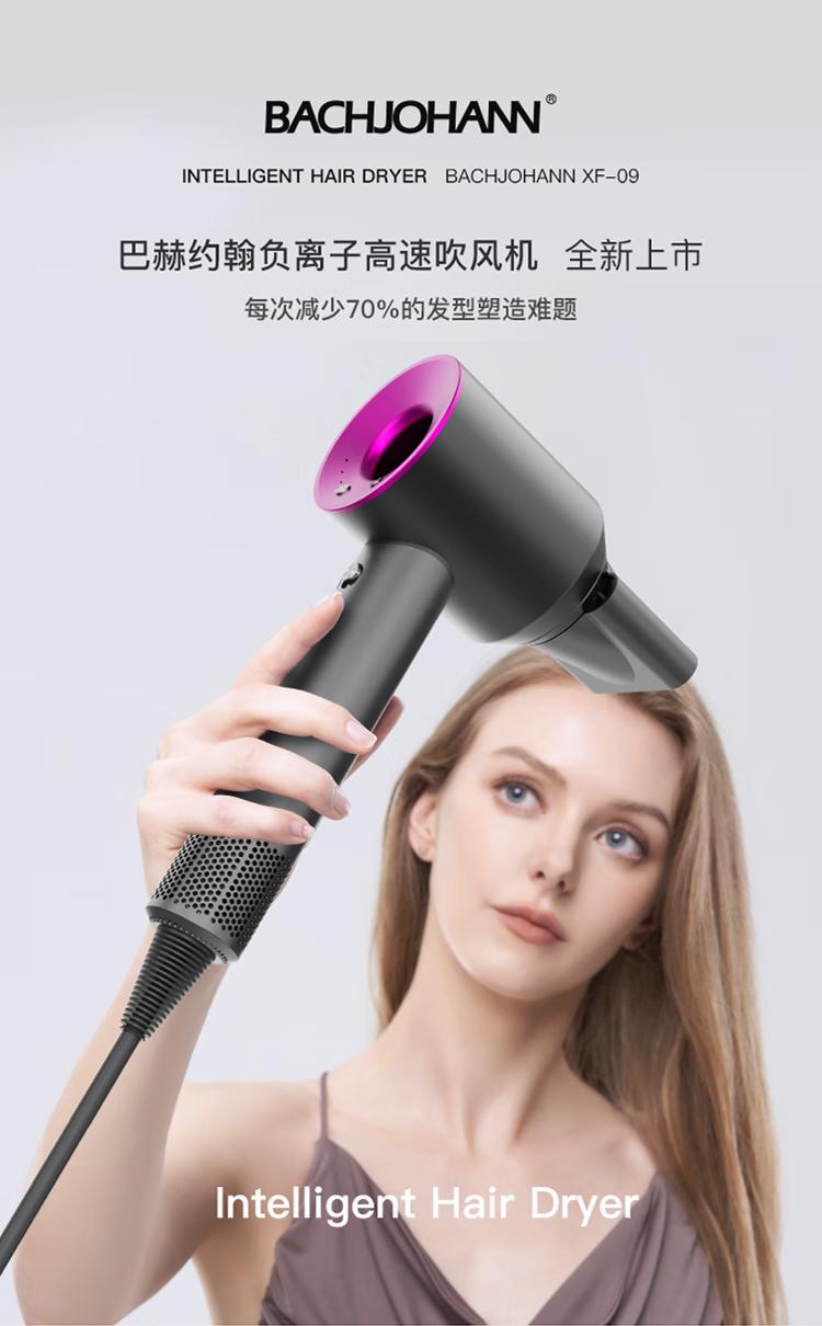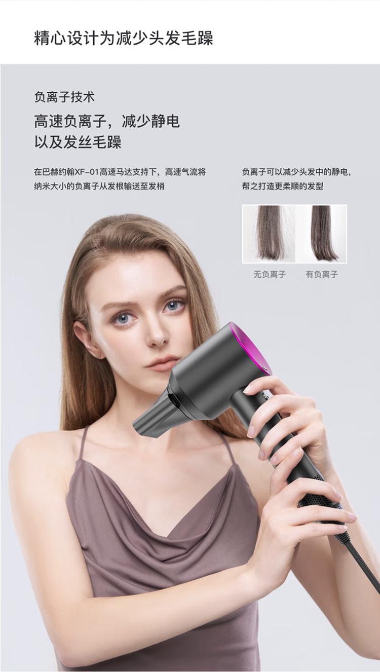 德国巴赫XF-09新一代电吹风机负离子护发速干大风力10.2万转高速吹风机便携家用男女 黑红色[单风嘴]旗舰版-1.8m线+磁吸挂架