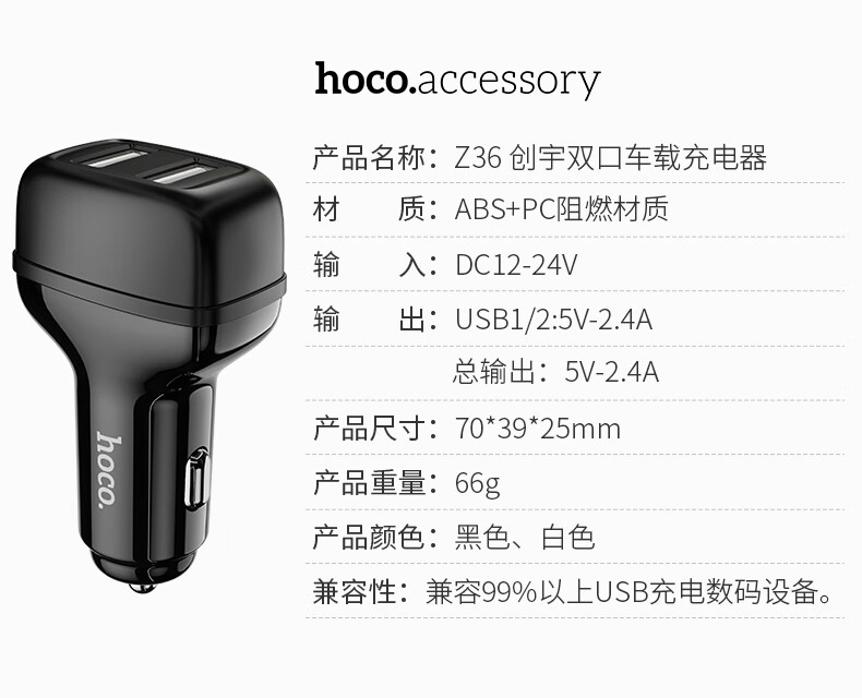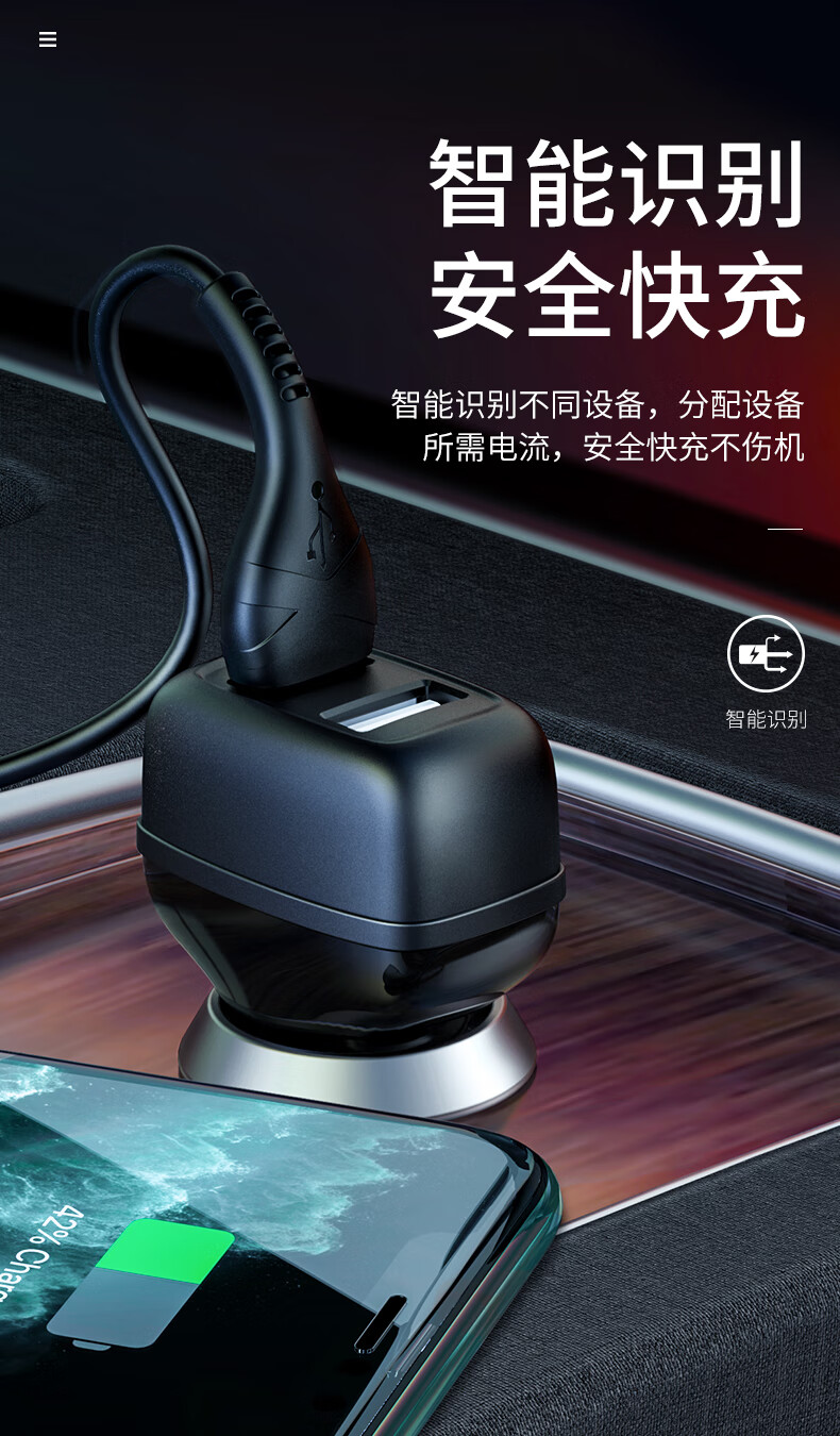 兼容99%以上USB充电设备(手机、平板、行车记录仪、导航仪等)