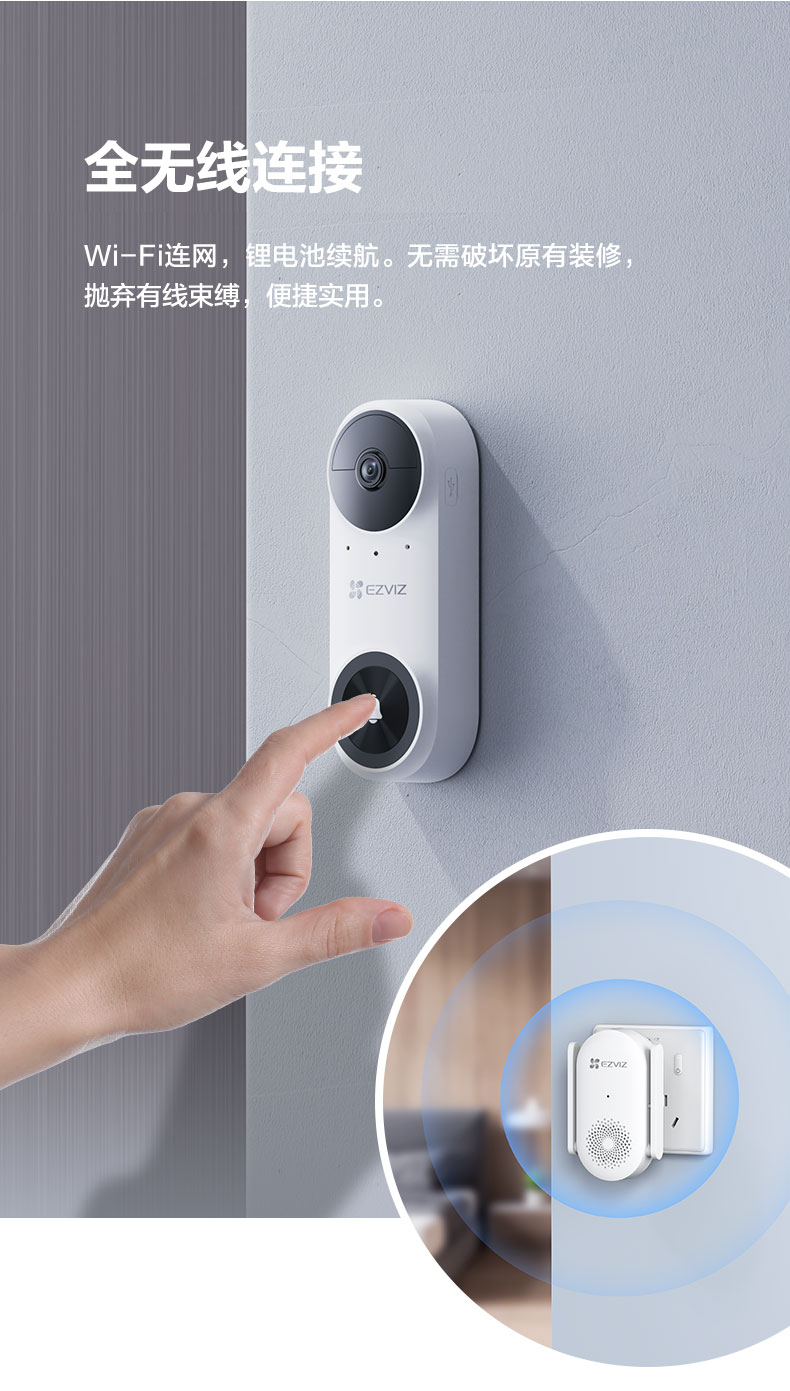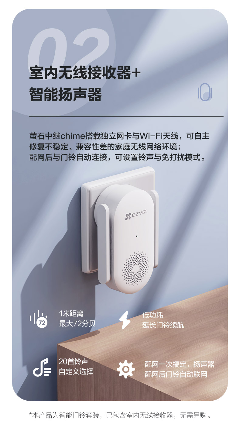 室内无线接收器(chime)支持自主修复网络环境,可设置铃声与免打扰模式