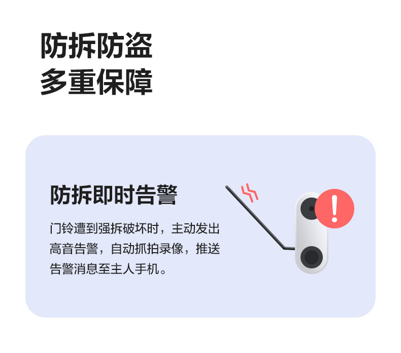 防拆即时报警,遭强拆时发出高音警报并推送消息至手机