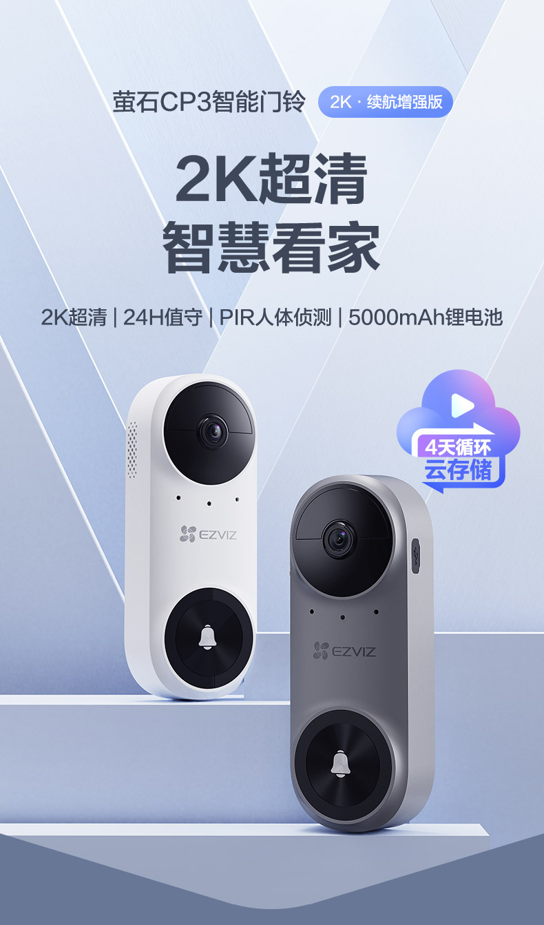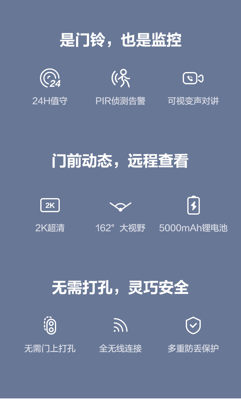 2K超清画质,300万像素搭配162°超广角,暗光环境下可呈现全彩画面