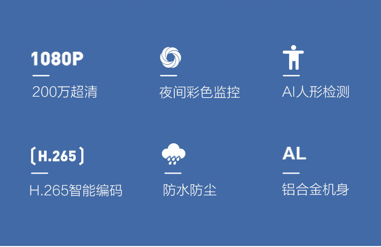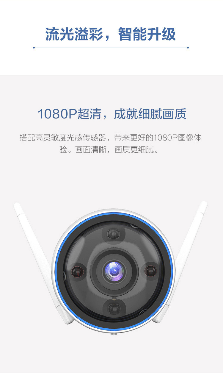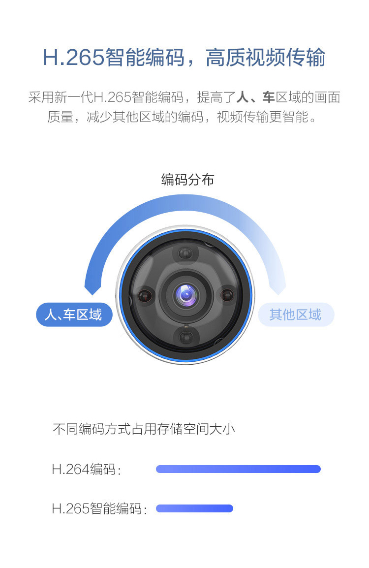 1 视频画质:1080P超清分辨率,搭配高灵敏度光感传感器,画面细腻清晰;支持H.265智能编码,提升人/车区域画质,减少其他区域编码,传输更智能且节省存储