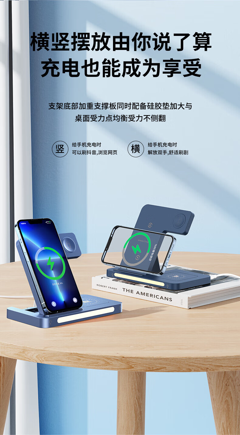 灵活摆放方式:手机支架支持横竖摆放,充电时可刷视频、浏览网页,解放双手