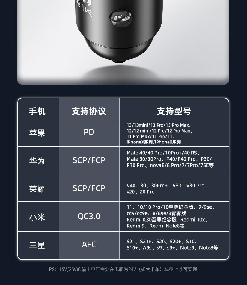 输入电压DC12V-24V,适配家庭轿车、SUV、货车等多种车型,通用性强