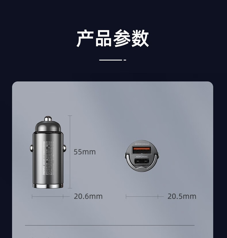 迷你体积设计,尺寸55mm×20.6mm,重量仅17.5g,不占用车内空间,便于携带收纳