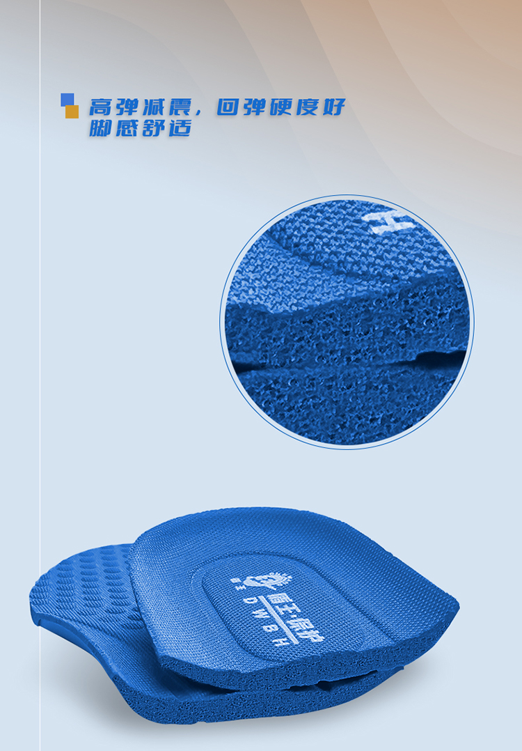 采用高发泡PU材质,具有良好的缓冲性能和回弹性,能有效吸收行走时产生的冲击力,减轻足部疲劳