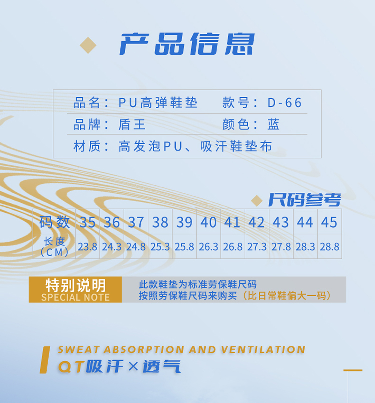产品为标准劳保鞋尺码设计,建议按照劳保鞋尺码选购(比日常鞋码偏大一码)