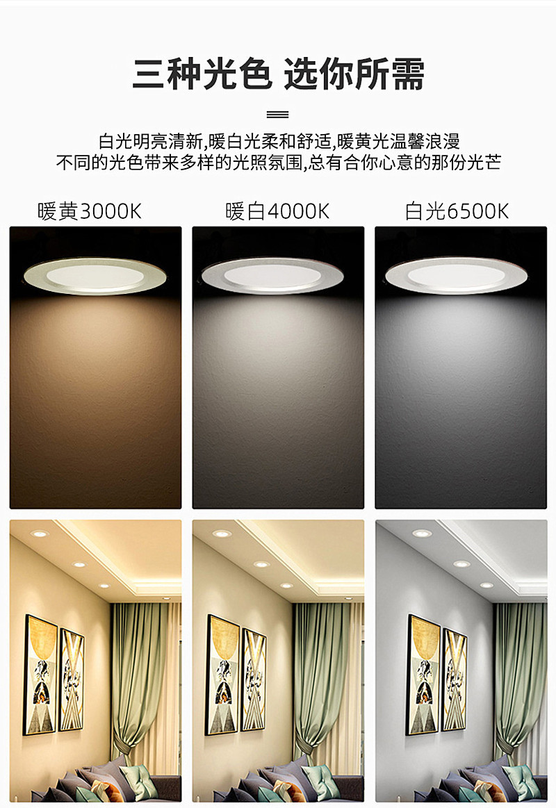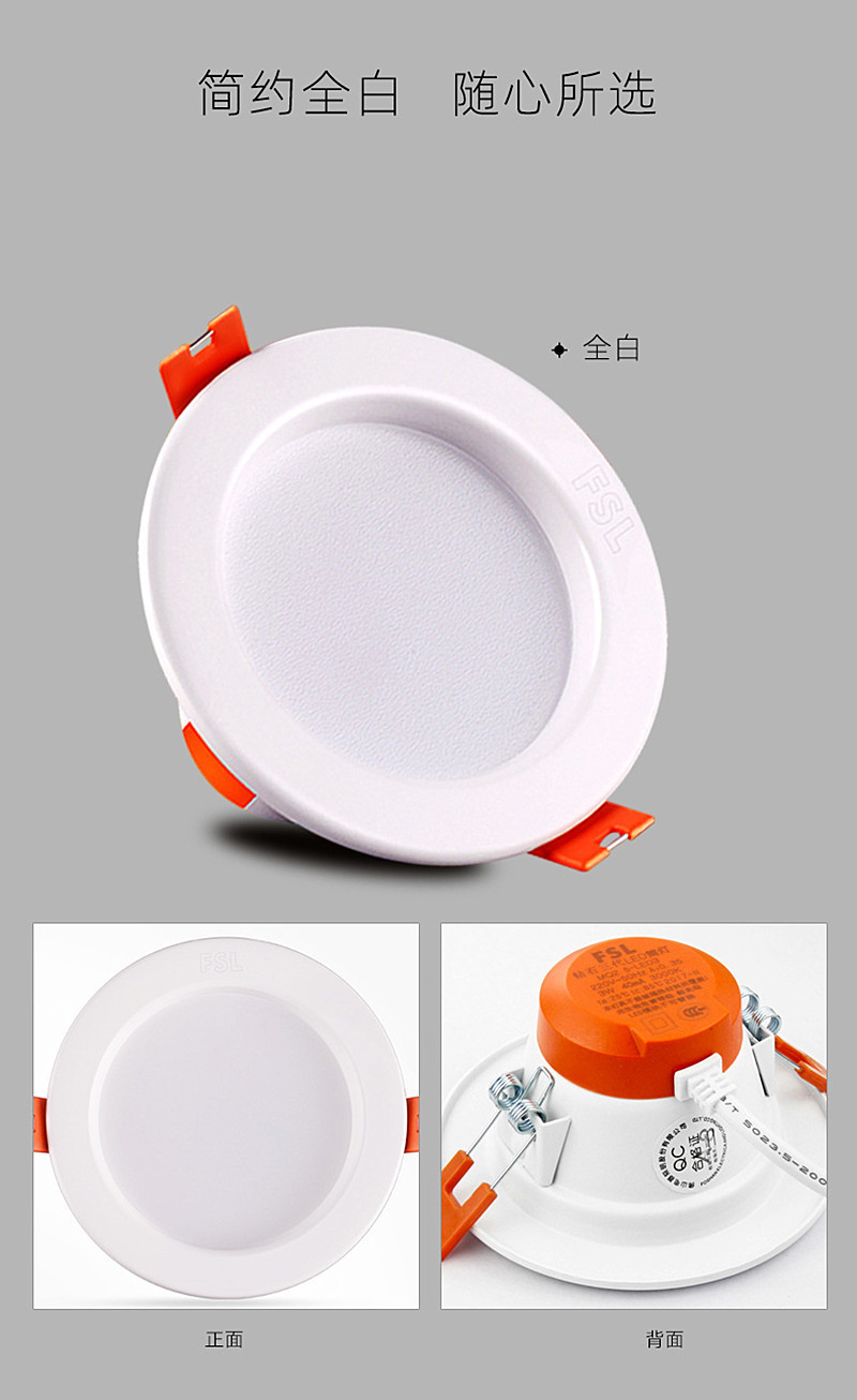FSL佛山照明 LED嵌入式天花客厅走廊卧室孔灯天花筒灯美家二代 MQ3.5K-LED7-3 全白 3.5寸7w 暖黄光