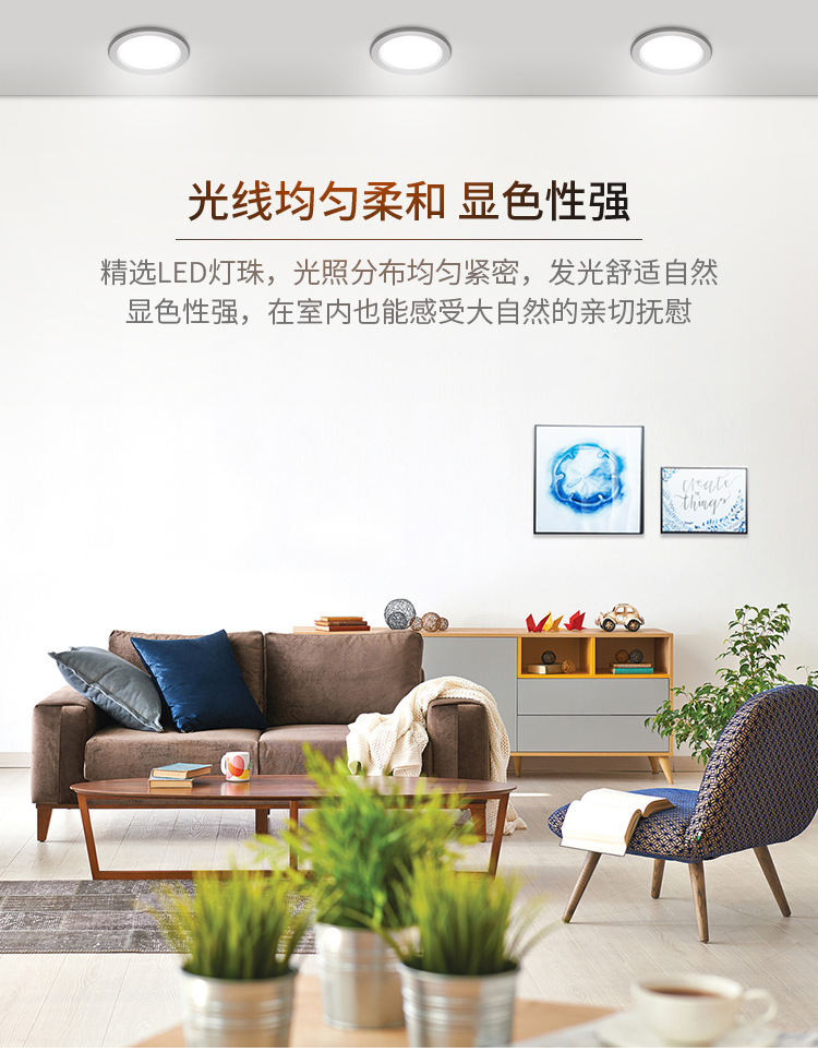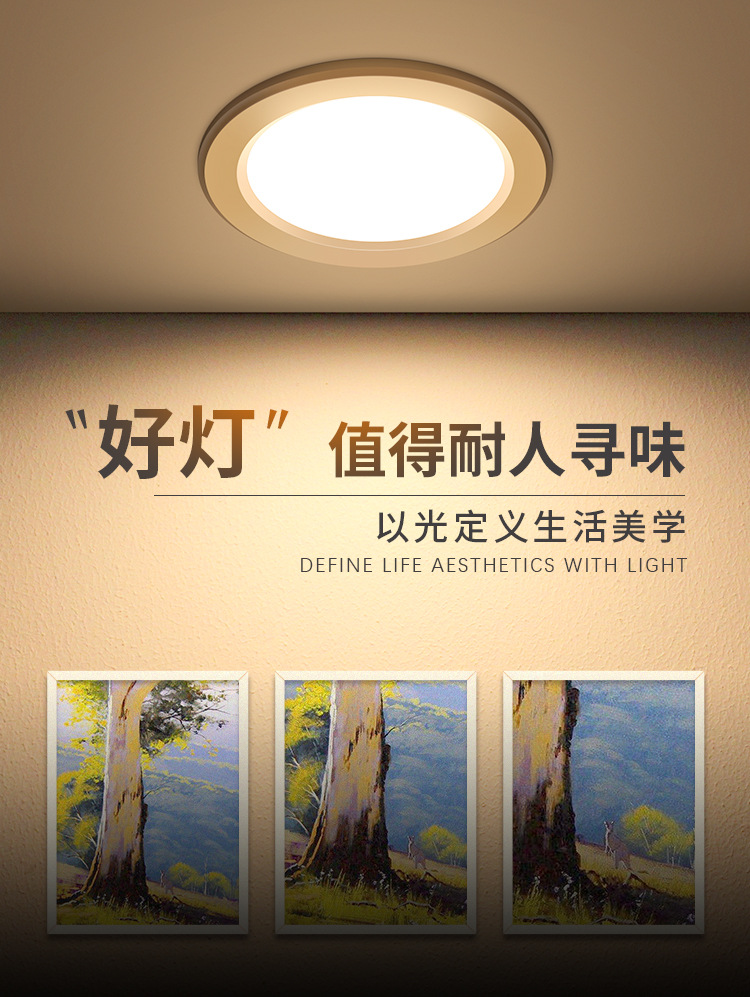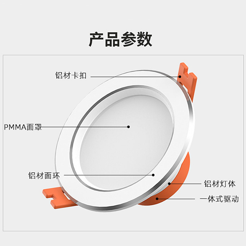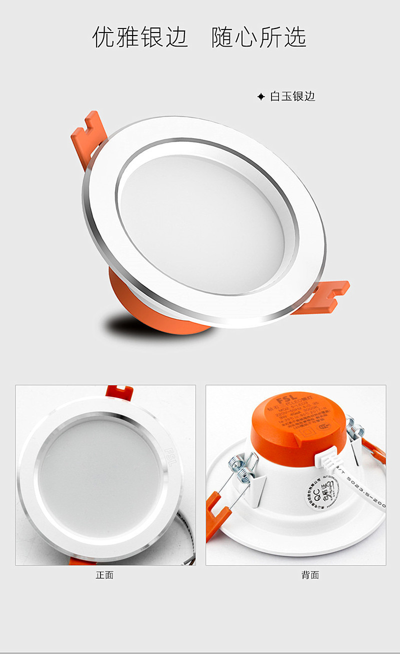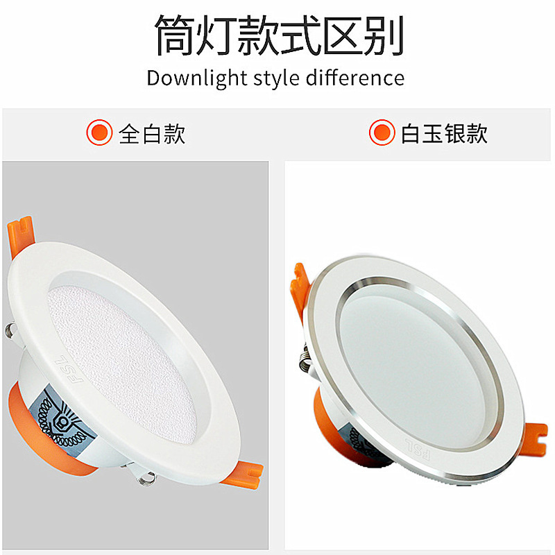 FSL佛山照明 LED嵌入式天花客厅走廊卧室孔灯天花筒灯美家二代 MQ3K-LED6-6 白银边 3寸6w 暖黄光
