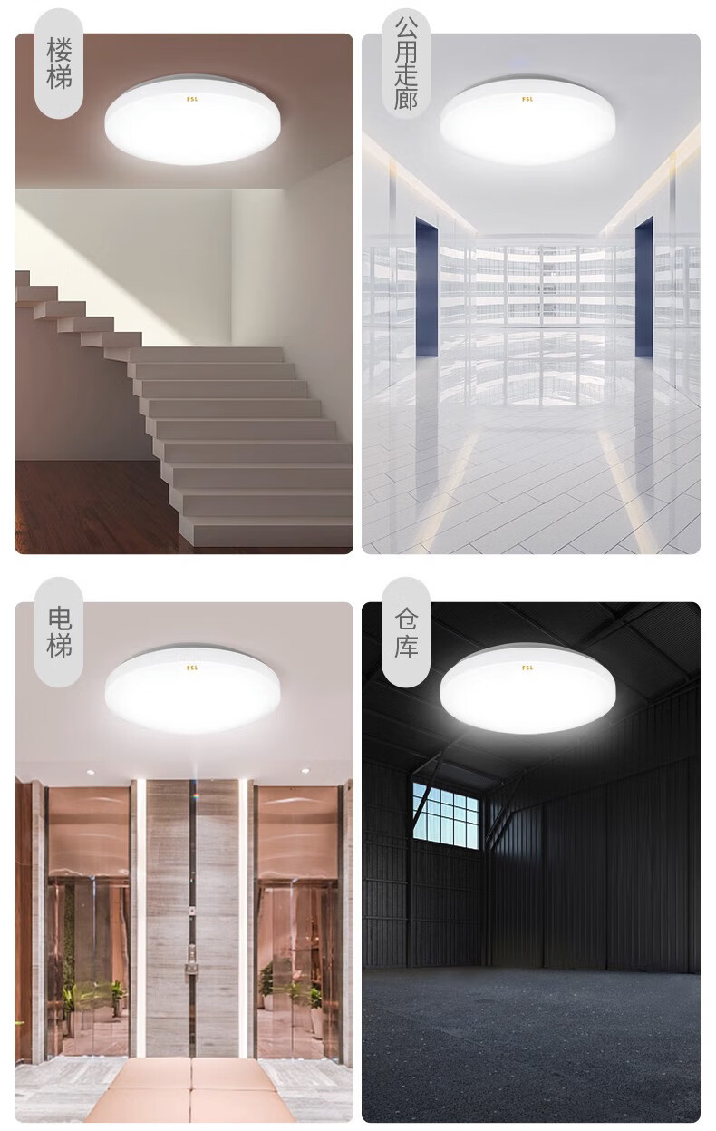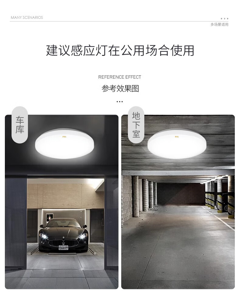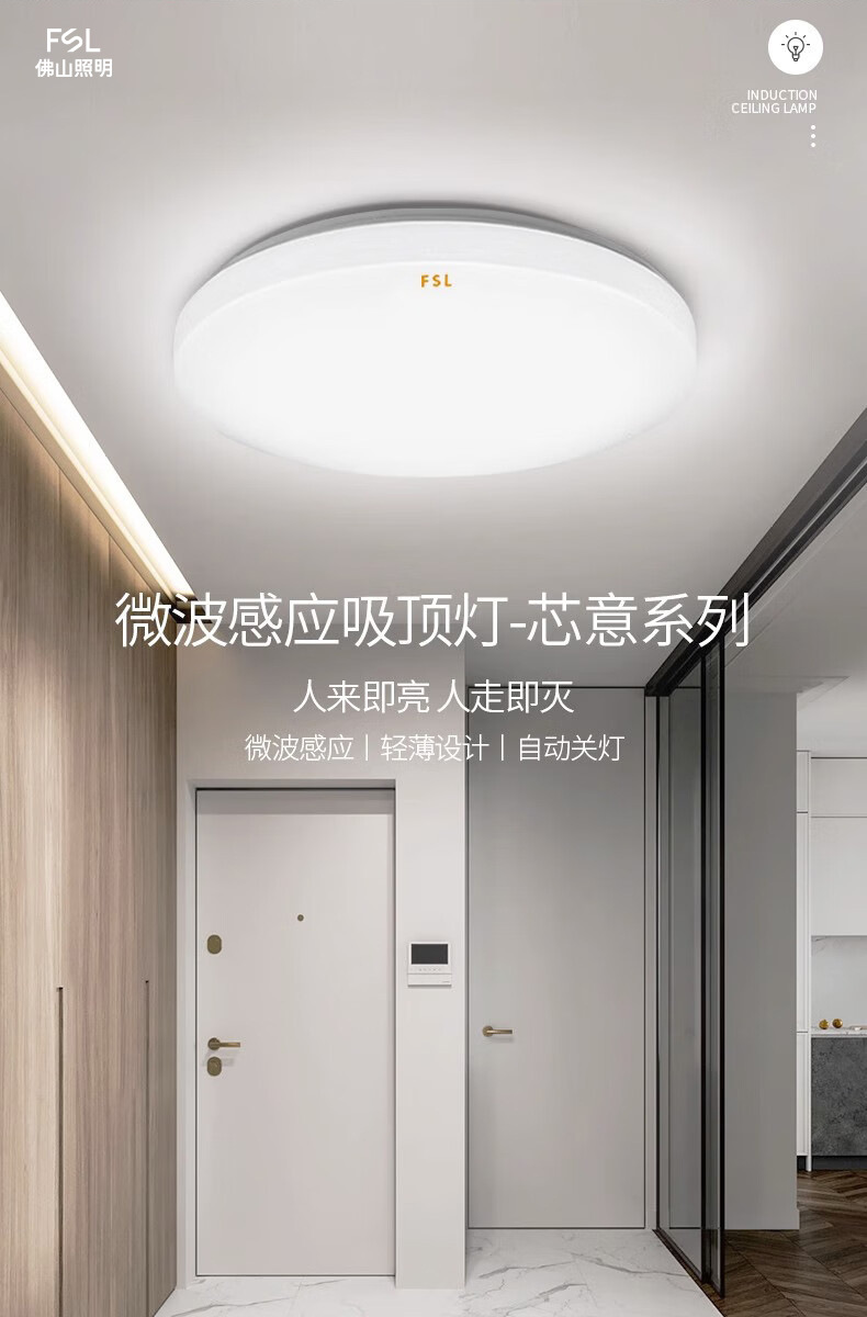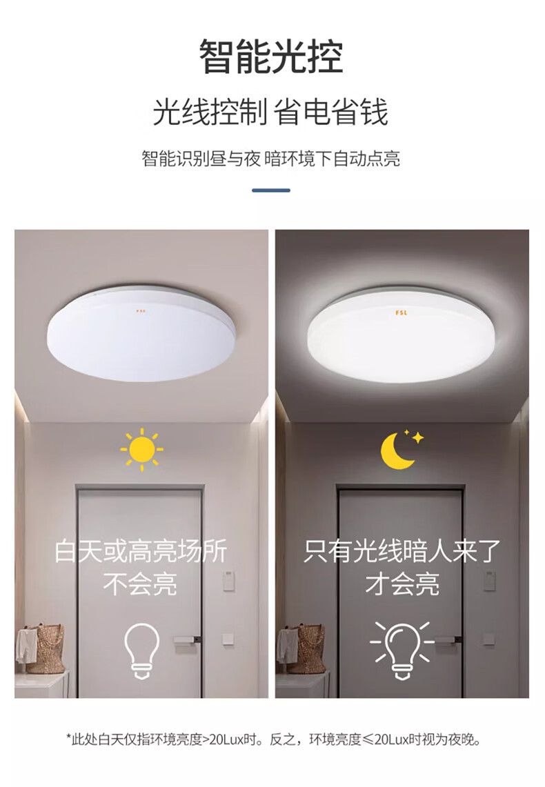 FSL佛山照明 LED微波感应吸顶灯走廊过道阳台圆形光控微波吸顶灯 QBX-7 微波光敏全灭 14w白光