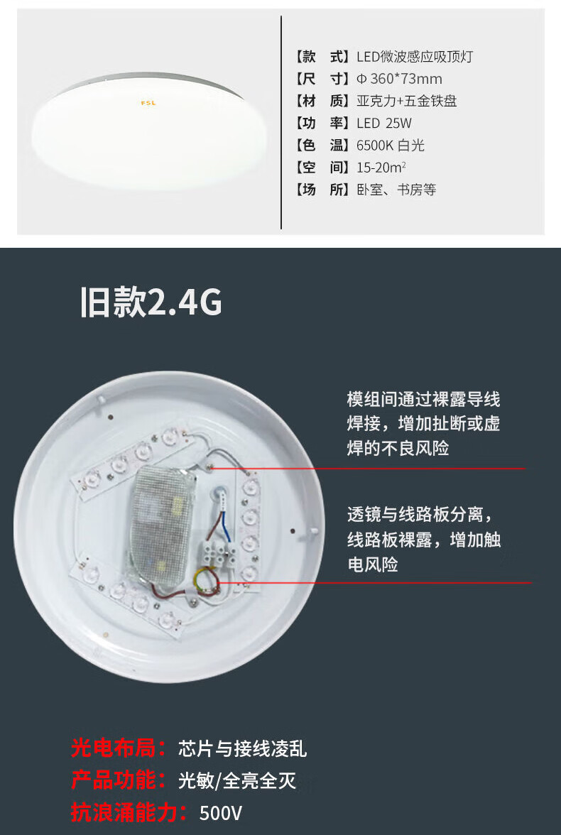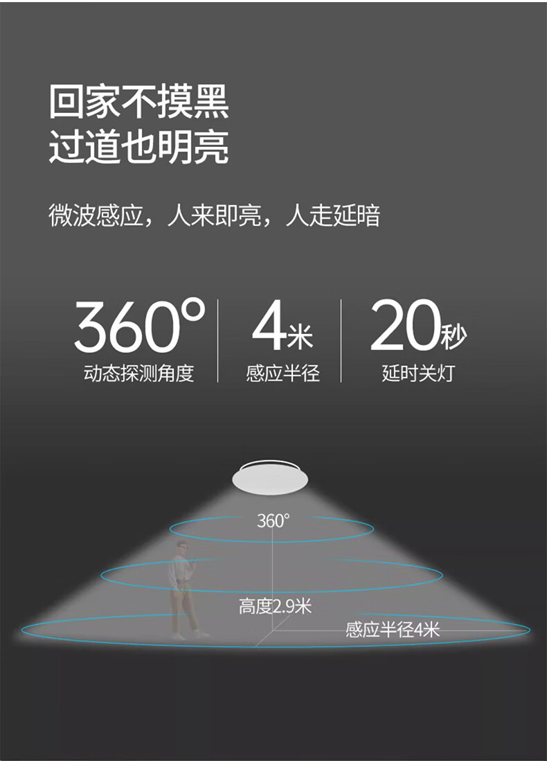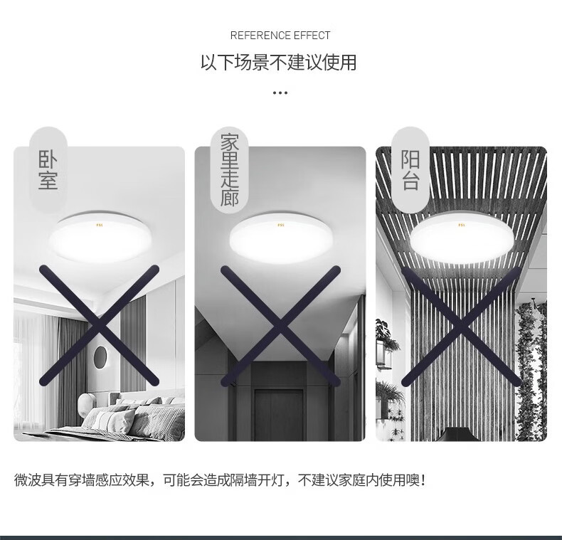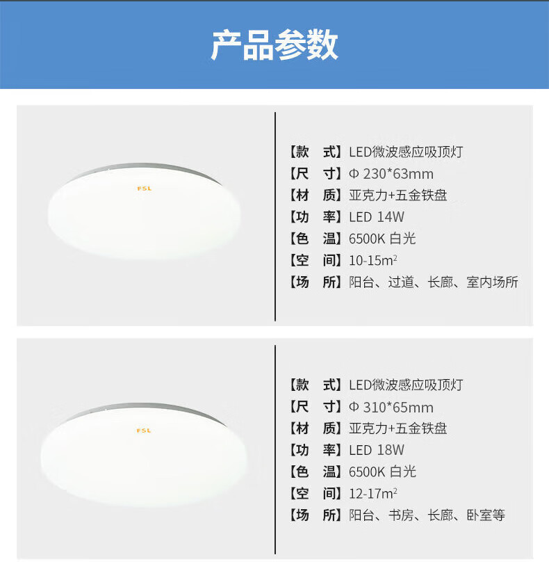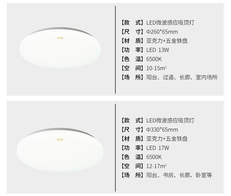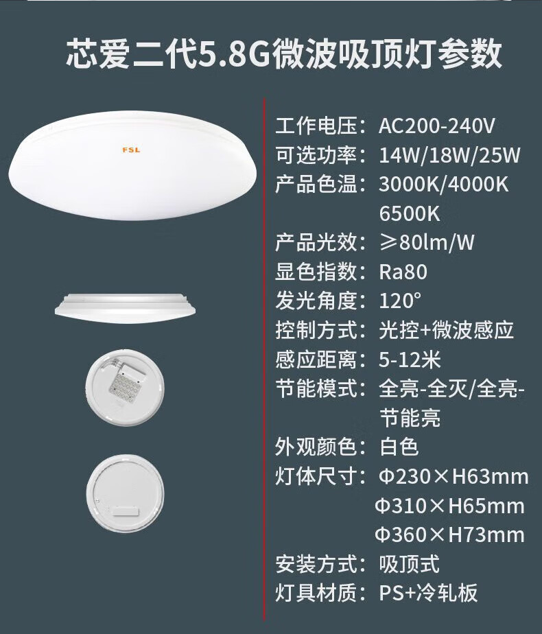 FSL佛山照明 LED微波感应吸顶灯走廊过道阳台圆形光控微波吸顶灯 QBX-7 微波光敏全灭 14w白光