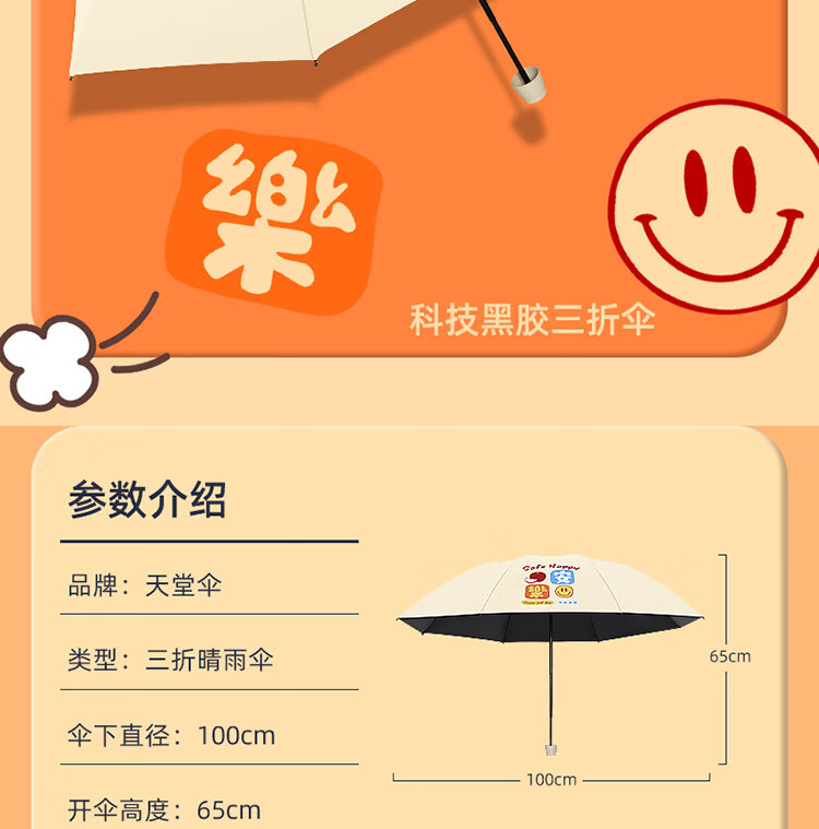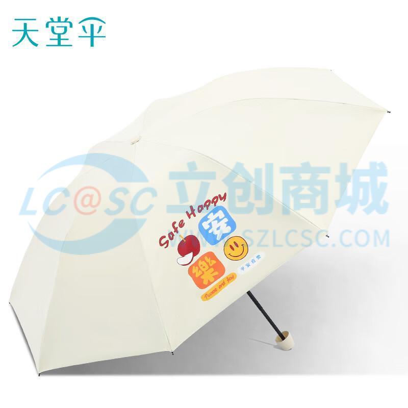 天堂伞33909E平安喜乐黑胶三折叠手动晴雨两用伞