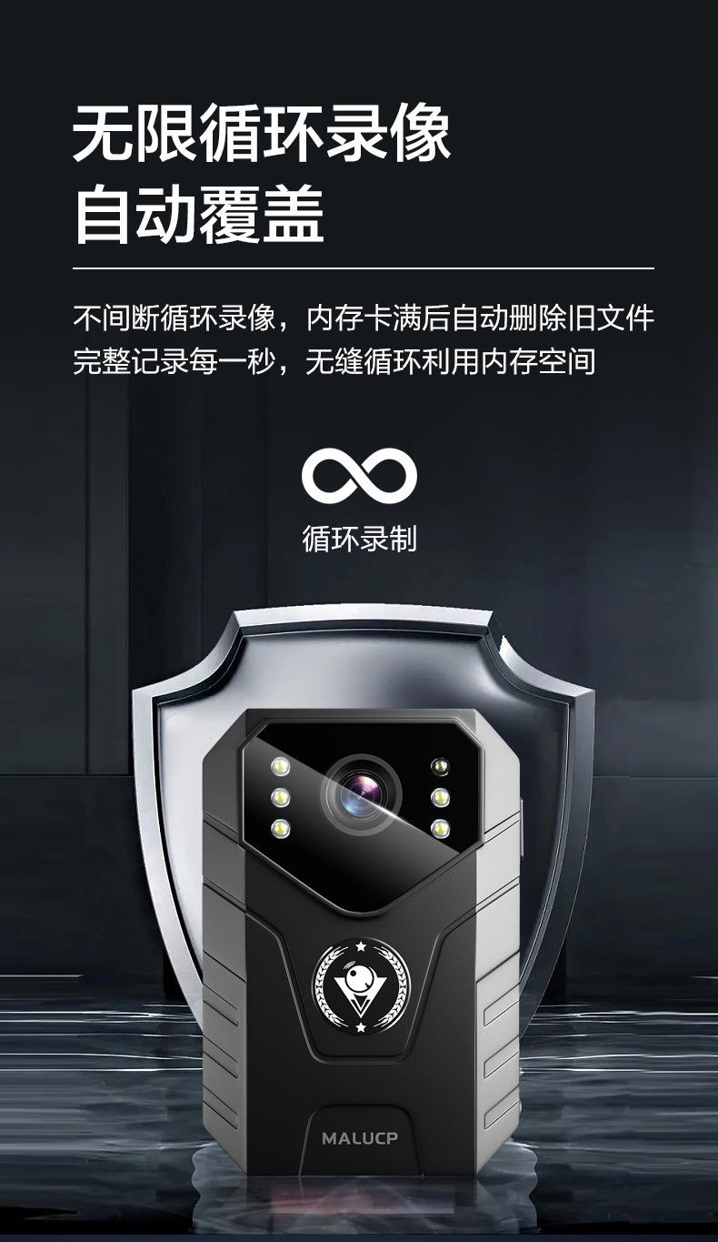 具备防护设计,全包结构提供防尘、防水、防摔三重保护,通过3米跌落测试,适用于恶劣作业环境。支持无限循环录像和自动覆盖机制,内存卡满后自动删除旧文件,确保持续不间断记录。