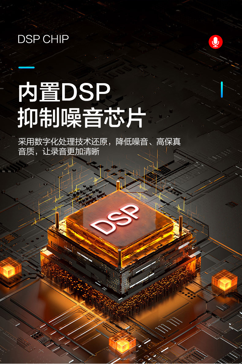 内置DSP数字降噪芯片,结合全向电容式麦克风,显著降低环境噪音,还原高保真音质,确保录音内容清晰可辨。