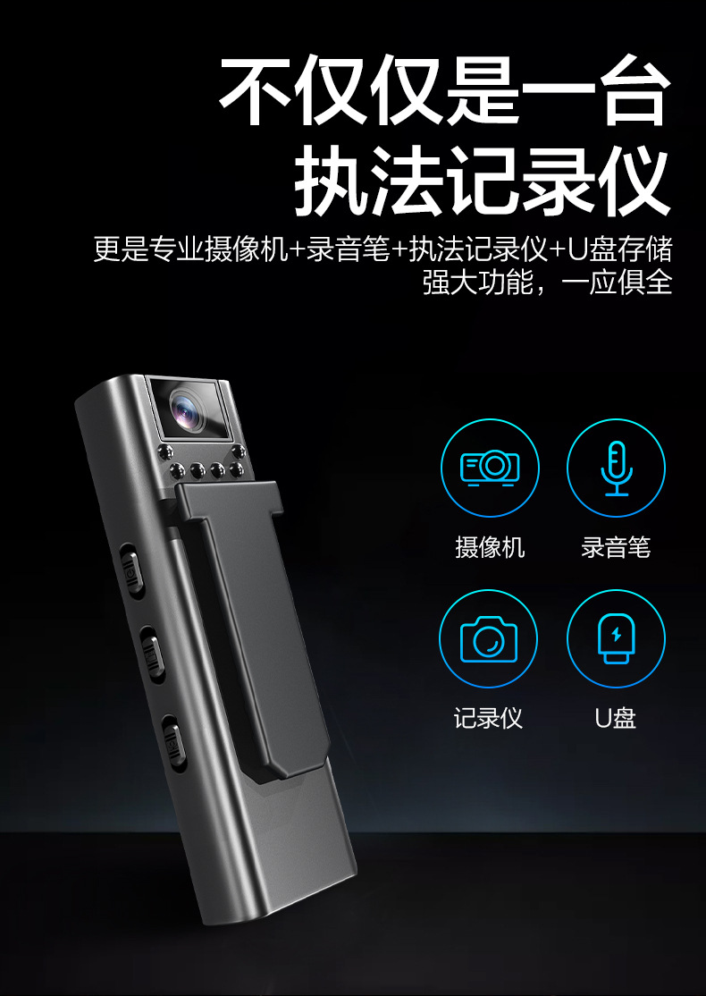多功能集成:不仅是执法记录仪,还兼具专业摄像机、录音笔、U盘存储功能,一机多用,适用于多种工作场景。