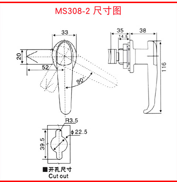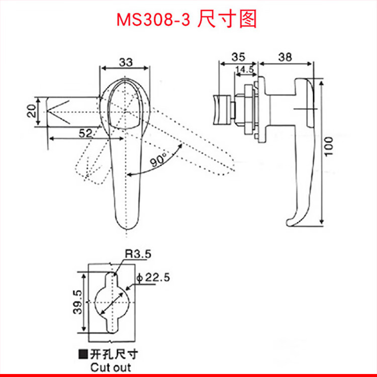 海斯迪克 电柜门把锁 配电箱配电柜门锁 柜门锁锌合金 403哑光锌合金 HKA-73