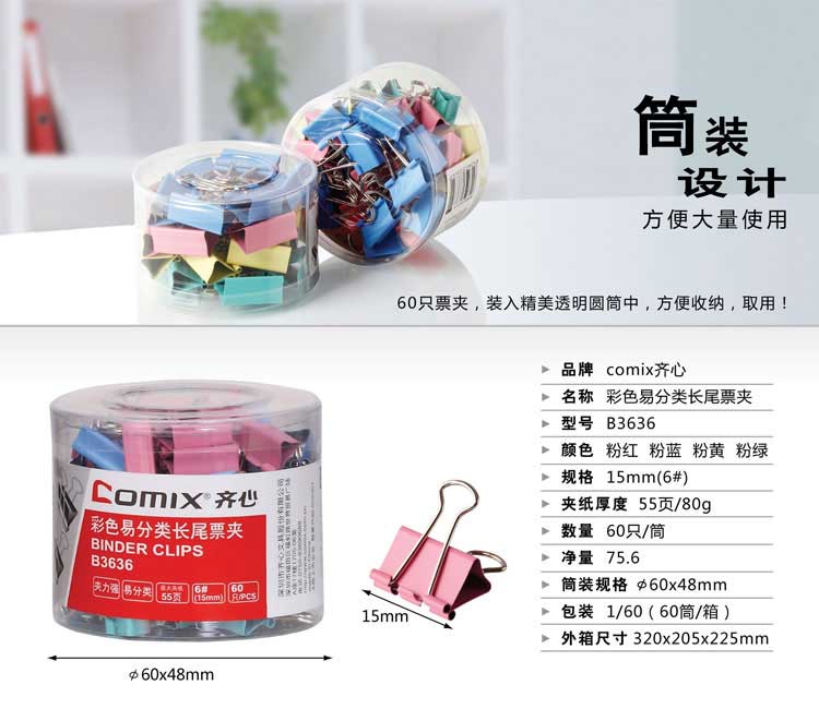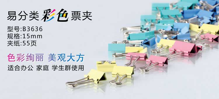 齐心 彩色长尾票夹 B3635 19MM