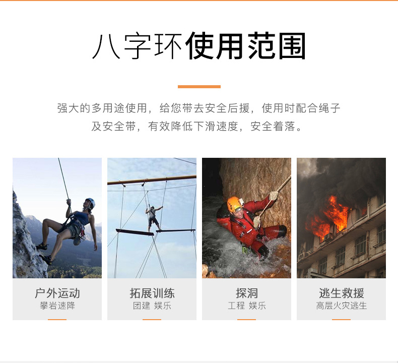 绳索直径应在8-13mm范围内,过细或过粗均会影响摩擦效果和安全性;建议使用符合标准的尼龙或聚酯类安全绳。