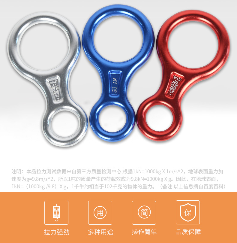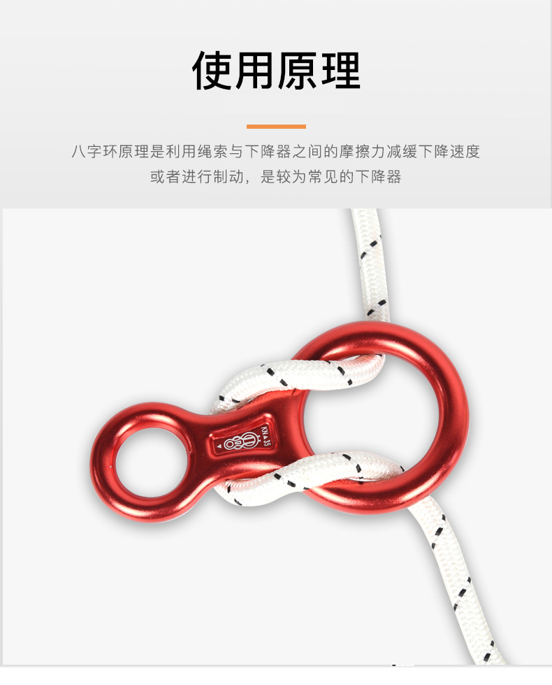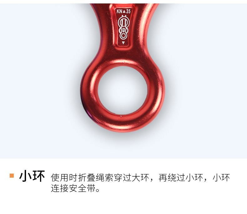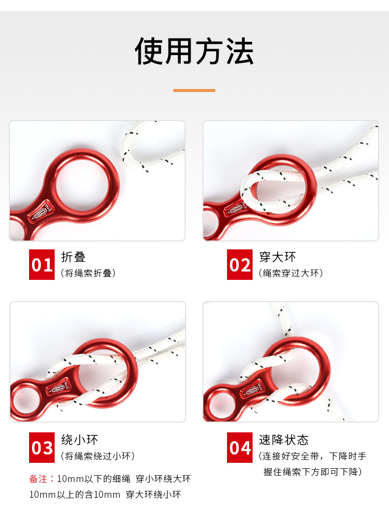 根据绳索粗细不同,穿绳方式有所区别:10mm以下细绳应先穿小环再绕大环;10mm及以上粗绳则应先穿大环再绕小环。
