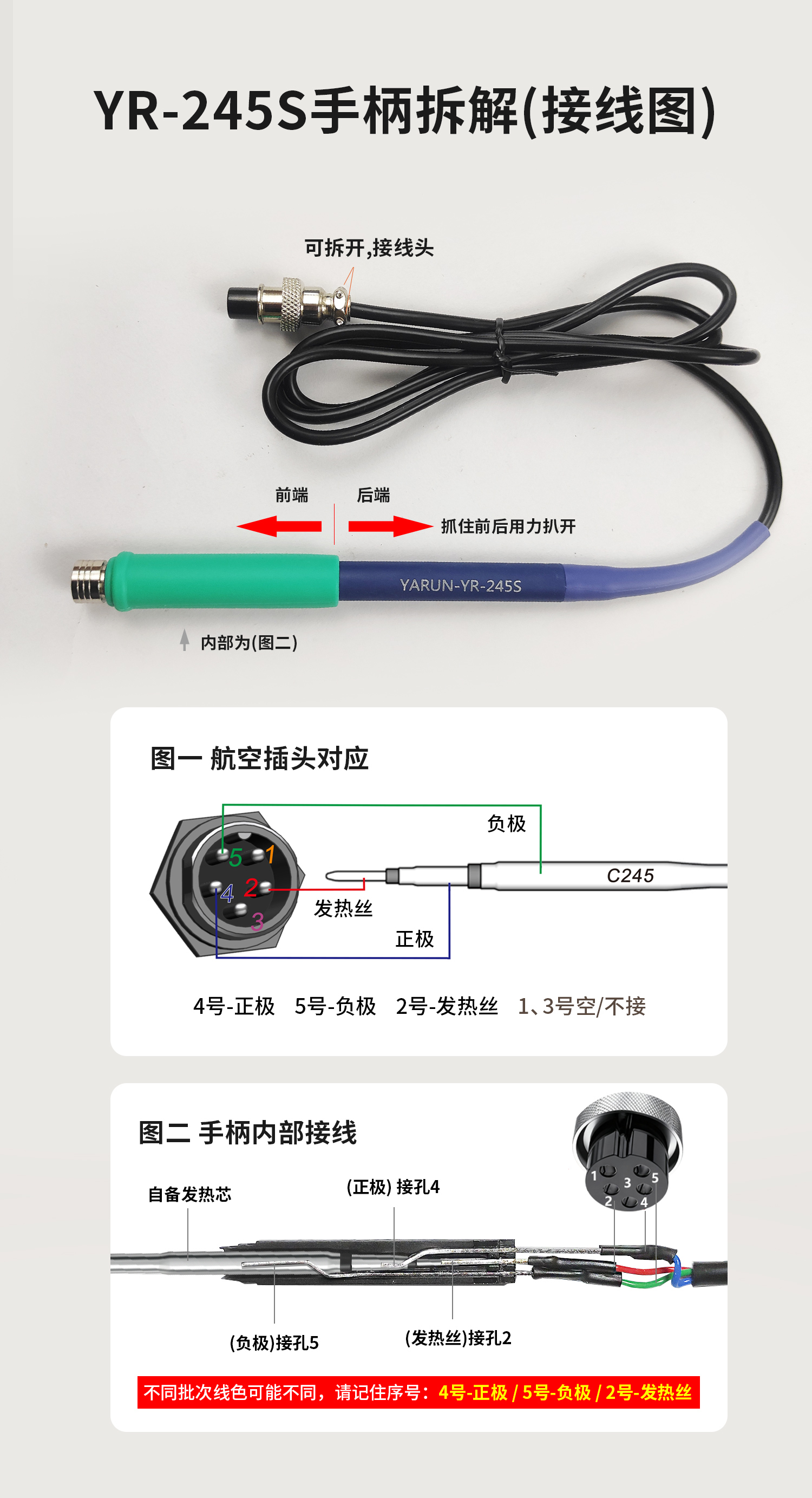 亚润电烙铁 焊台 电洛铁铁芯T12c手柄 T12A B烙铁手柄线5孔 YR-245S(不含内六角和K头)