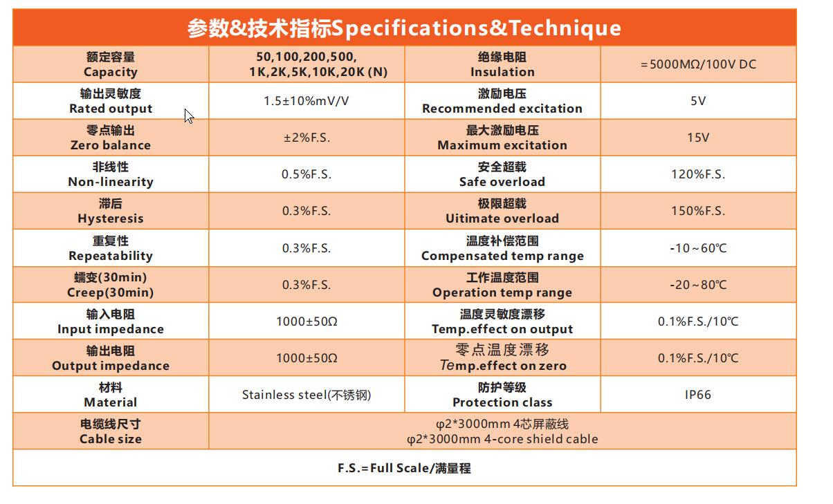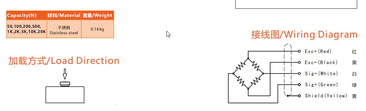 请确保加载方向与传感器标示的受力方向一致(垂直向下加载),避免侧向力或偏心加载,以免影响测量精度并导致传感器损坏。