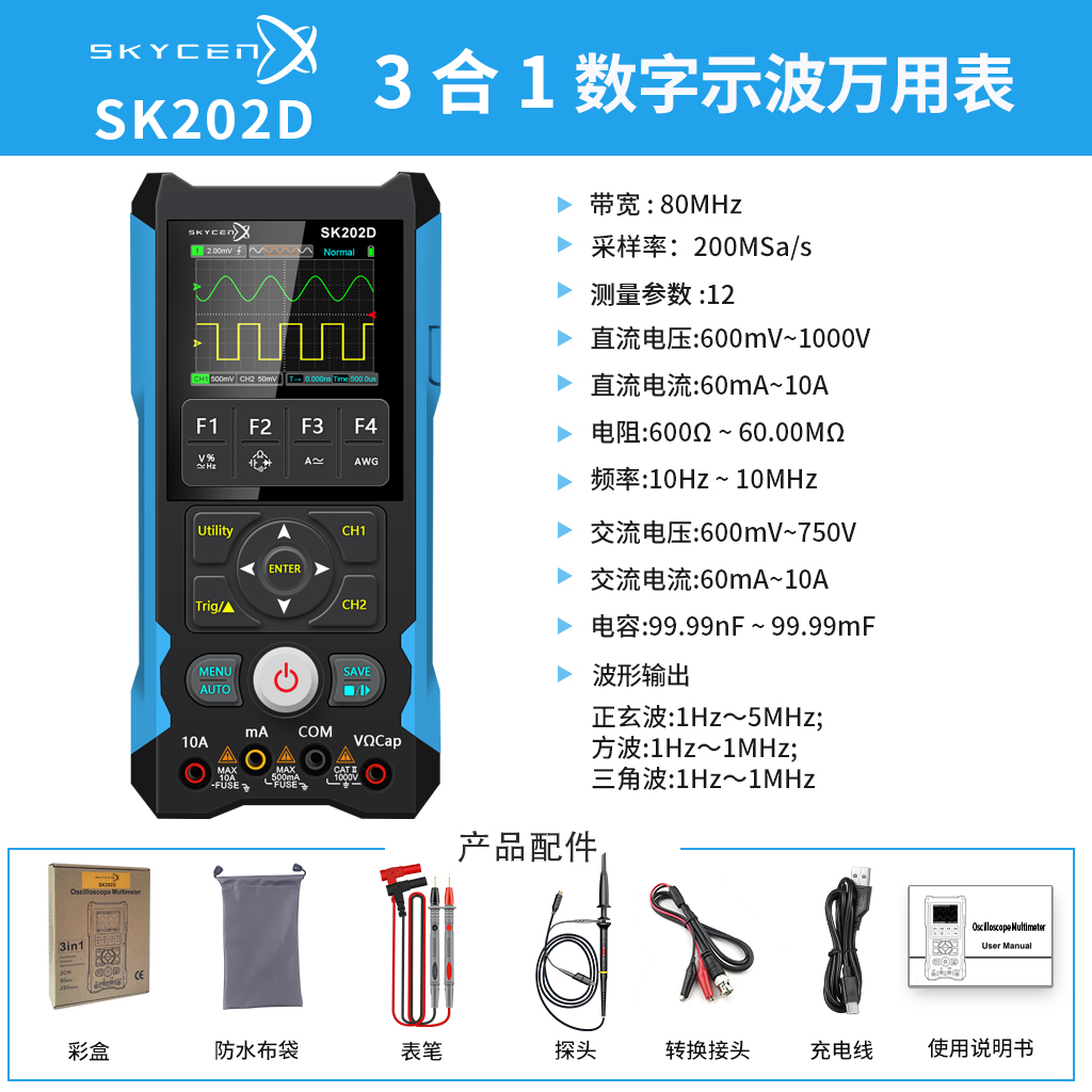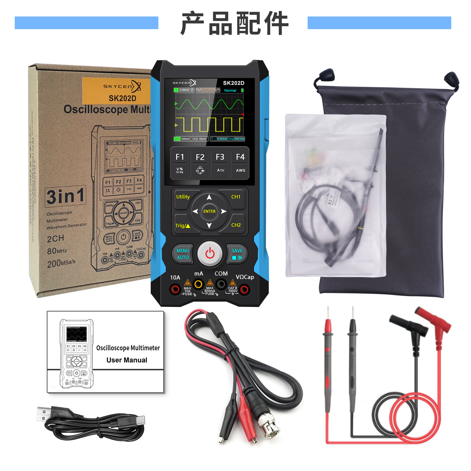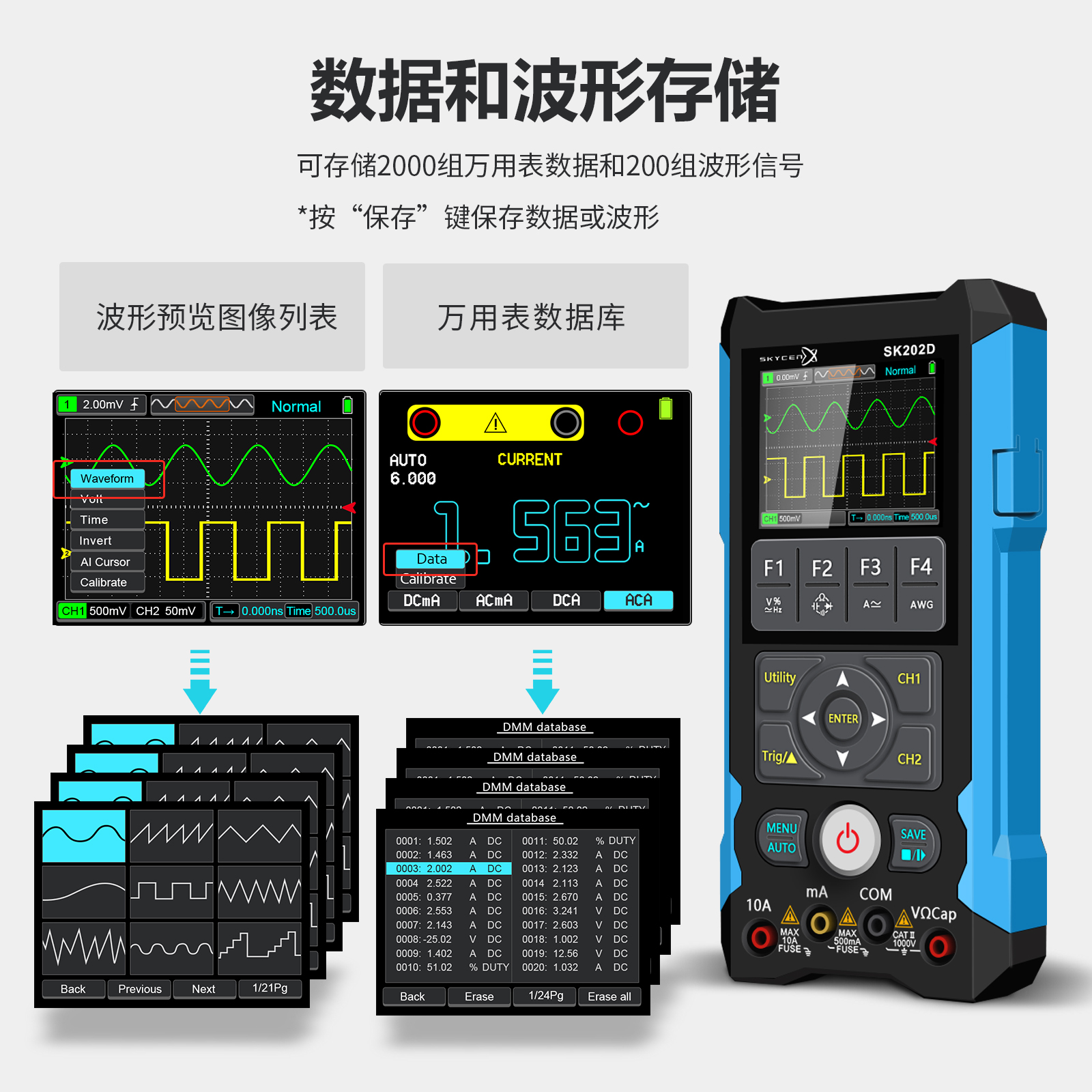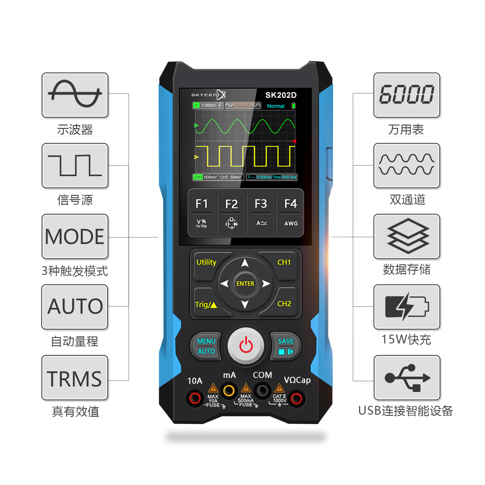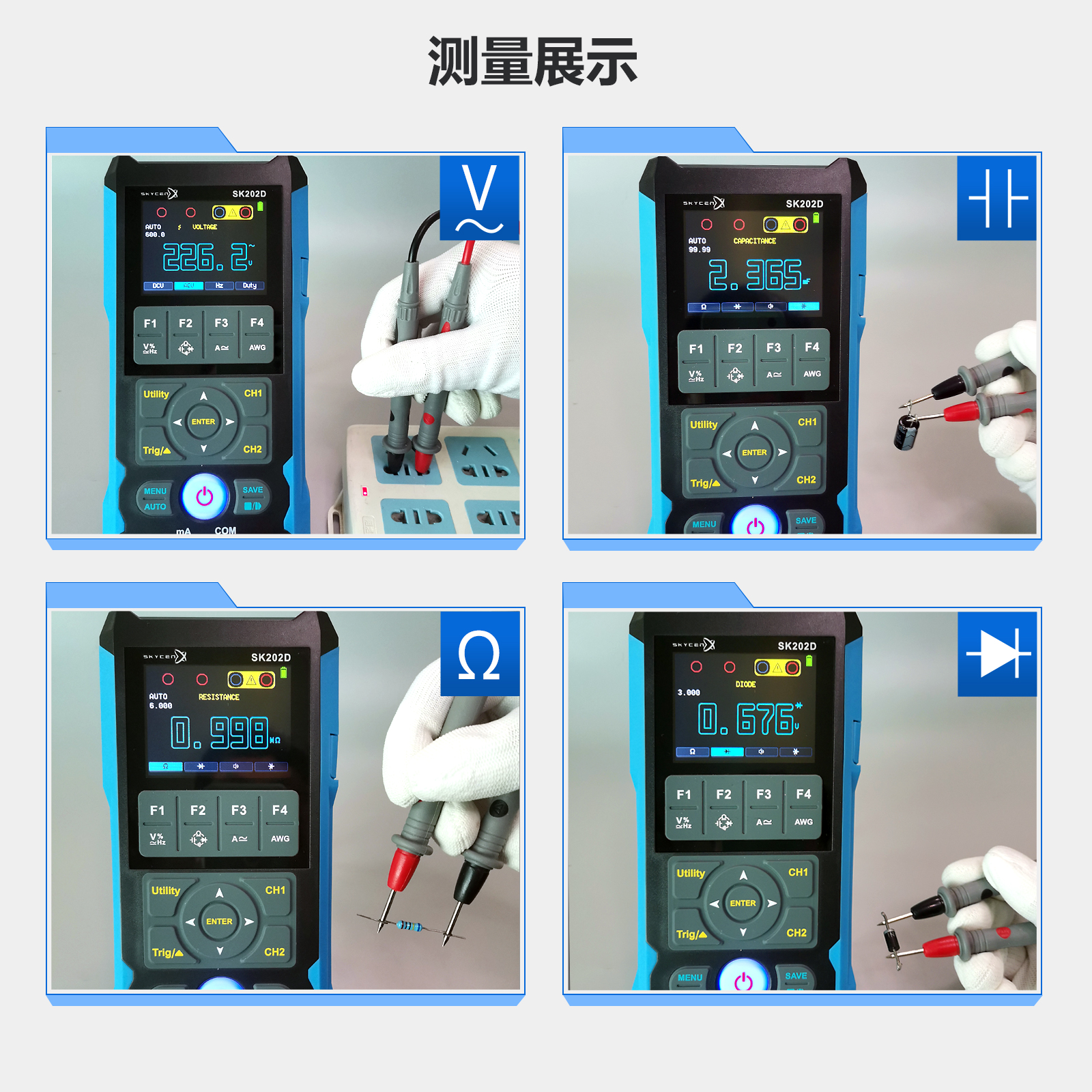 三合一多功能设计:集成示波器、数字万用表、信号源三种功能,满足多场景测量需求