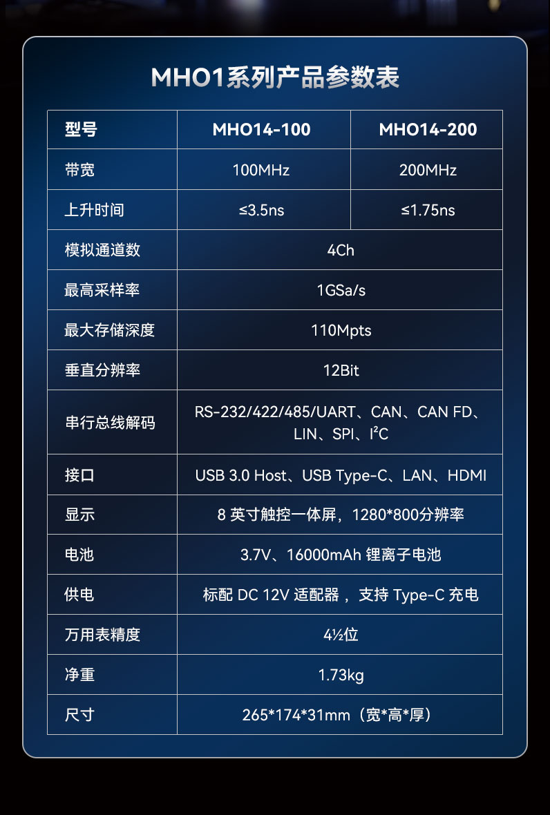 1 品牌为麦科信(Micsig),型号MHO14-200,属于高分辨率平板示波器