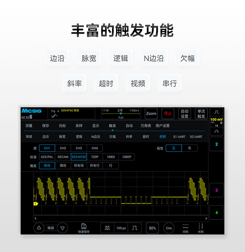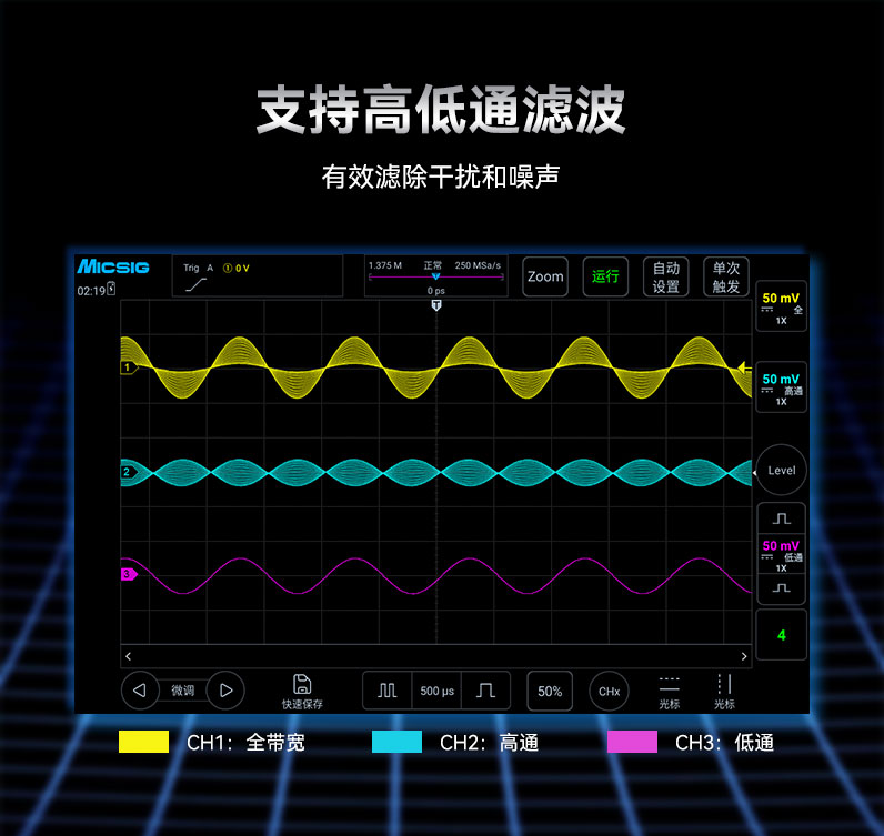 Micsig麦科信12位高分辨率示波器200M带宽1G采样率4通道全触控屏